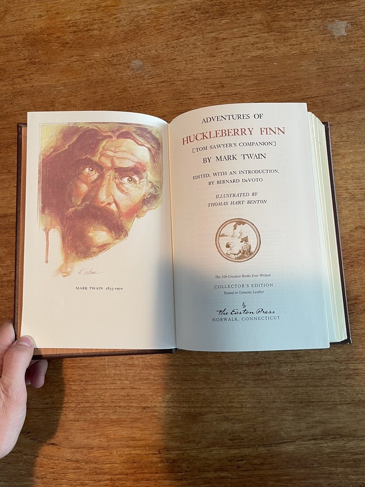 This is a rare and highly sought-after collector's edition of "The Adventures of Huckleberry Finn" by Mark Twain. The book is bound in leather and features special attributes that make it a unique addition to any collection. The language of the book is English and it was printed in 1994 by Easton Press. The book falls under the categories of "Books & Magazines" and "Antiquarian & Collectible". The book's topic is action and adventure while the subject is literature and fiction. This edition is perfect for collectors and enthusiasts who want to own a piece of history.