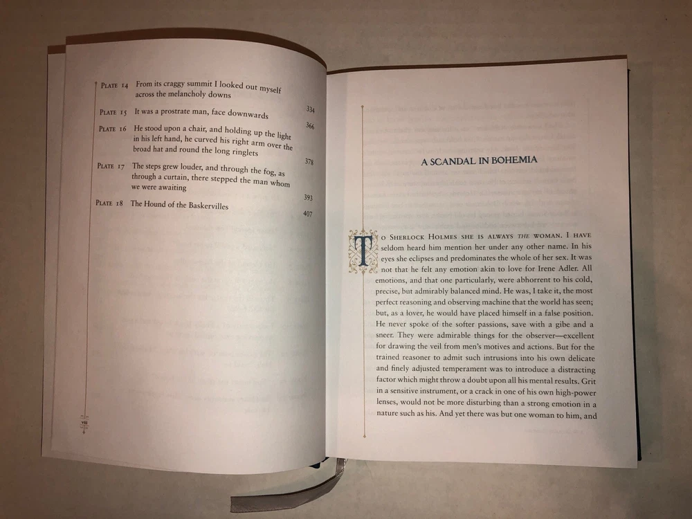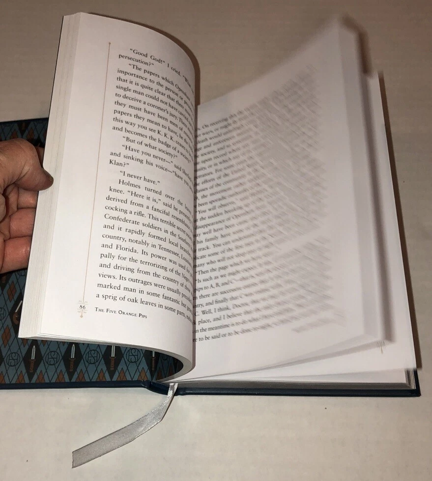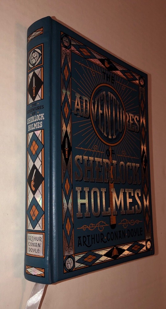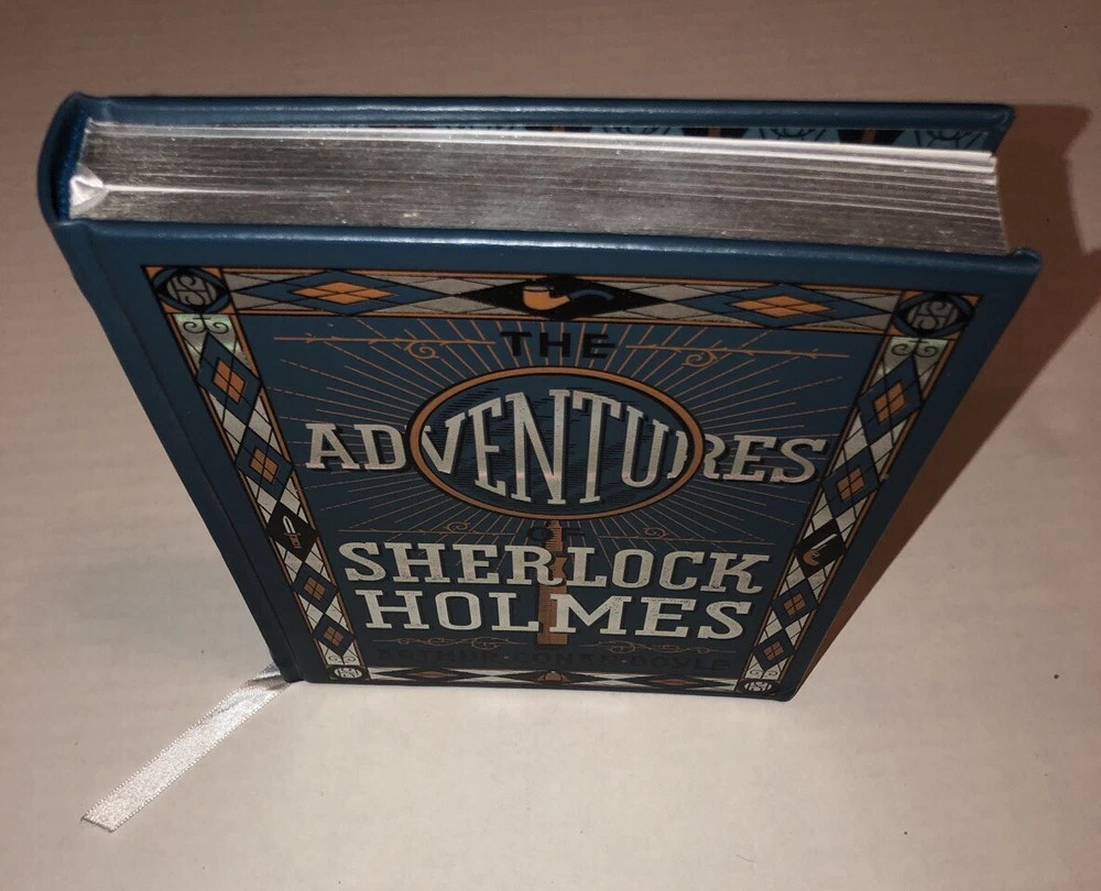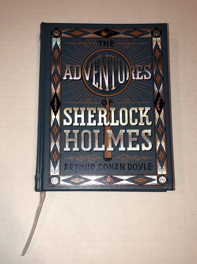 “The Adventures of Sherlock Holmes” Hard Cover bonded leather edition by Arthur Conan Doyle (2016) Barnes & Noble Collectible Edition with Paget illustrations and It also has a ribbon page marker. Condition is Like New...has one corner with a slight wrinkle..see last photo....otherwise, the book appears unread, EXCellent. Shipped with USPS Media Mail. Please ask questions before the listing ends. No returns