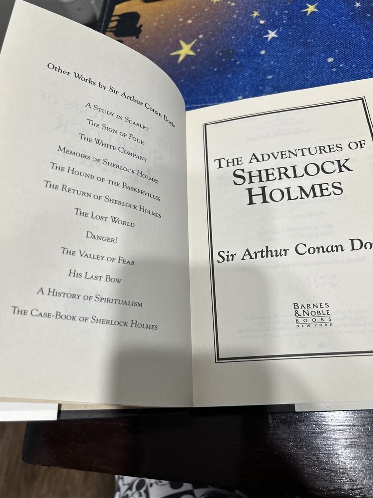 The product is "The Adventures of Sherlock Holmes" by Arthur Conan Doyle, a novel in the Sherlock Holmes series published by Barnes & Noble in 1995. It is a hardcover book with a dust jacket, featuring 317 pages of classic adventure fiction. The book is written in English and is intended for a wide audience including young adults, ages 9-12, and adults.