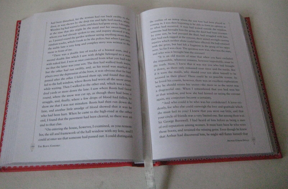 The Adventures of Sherlock Holmes by Arthur Conan Doyle Barnes & Noble Collection Editions Hardback Leatherbound Children's Classics Normal reading condition and wear Pages and binding in great shape Shiny covers with mild wear and NO creases! No written or missing pages Sherlock Holmes is the greatest detective in fiction, a crime-solver gifted with powers of observation that allow him to see clues that ordinary detectives easily overlook. For more than a century, his adventures have thrilled generations of readers with crimes that are seemingly insoluble until the great detective steps in and applies his skills of deductive reasoning This volume collects seven of Holmes's most challenging cases Including : A Scandal in Bohemia The Red-Headed League The Five Orange Pips The Blue Carbuncle The Speckled Band The Beryl Coronet It also features the full-length novel 'The Hound of the Baskervilles', about a legendary ghostly hound who has haunted generations of a noble family living in Baskerville Manor All of the stories feature art by Sidney Paget, who illustrated the Sherlock Holmes stories that appeared in originally in The Strand The Adventures of Sherlock Holmes is one of Barnes & Noble's leather-bound classics for children It features classic illustrations, an elegant bonded leather binding, a satin-ribbon bookmark and distinctive gilt edging It will provide hours of enjoyment for readers of all ages. Check out all the pictures! What you see in the picture is what you get. If you have any questions, please ask before you buy. ****PLEASE BE AWARE BEFORE BUYING**** We strive for complete customer service & satisfaction! If you receive an item you have an issue with it, please contact us before leaving feedback or open a case so we can try fixing the issue. All items come from a smoke free home. NO RETURNS!!!!!