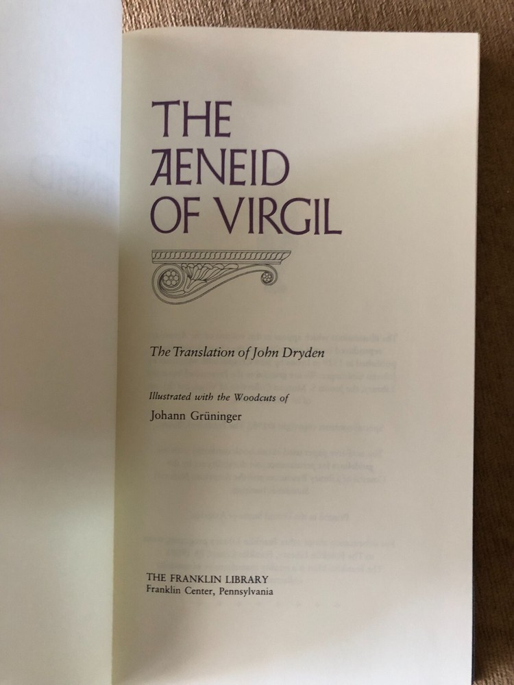Add this exquisite collector's edition of The Aeneid by Virgil to your library. This leather-bound classic is a must-have for any book collector or literature enthusiast. Published by Franklin Press Library, this edition is a fantastic find that will make a great addition to your collection. The book is in English and contains a satin bookmark, illustrations, and gold gilt pages that make it a unique piece. Don't miss out on the opportunity to own this timeless classic.