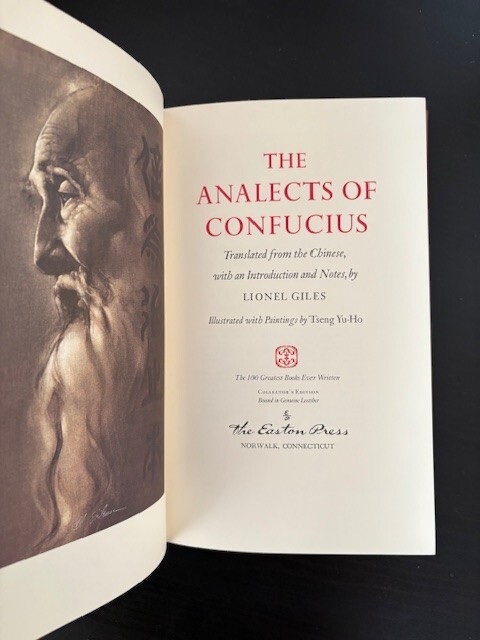The Analects of Confucius. Illustrated by Tseng Yu-Ho. Published by The Easton Press in 1976. 100 Greatest Books Ever Written collection. Collector's Edition Bound in Genuine Leather. The condition is Fine.
