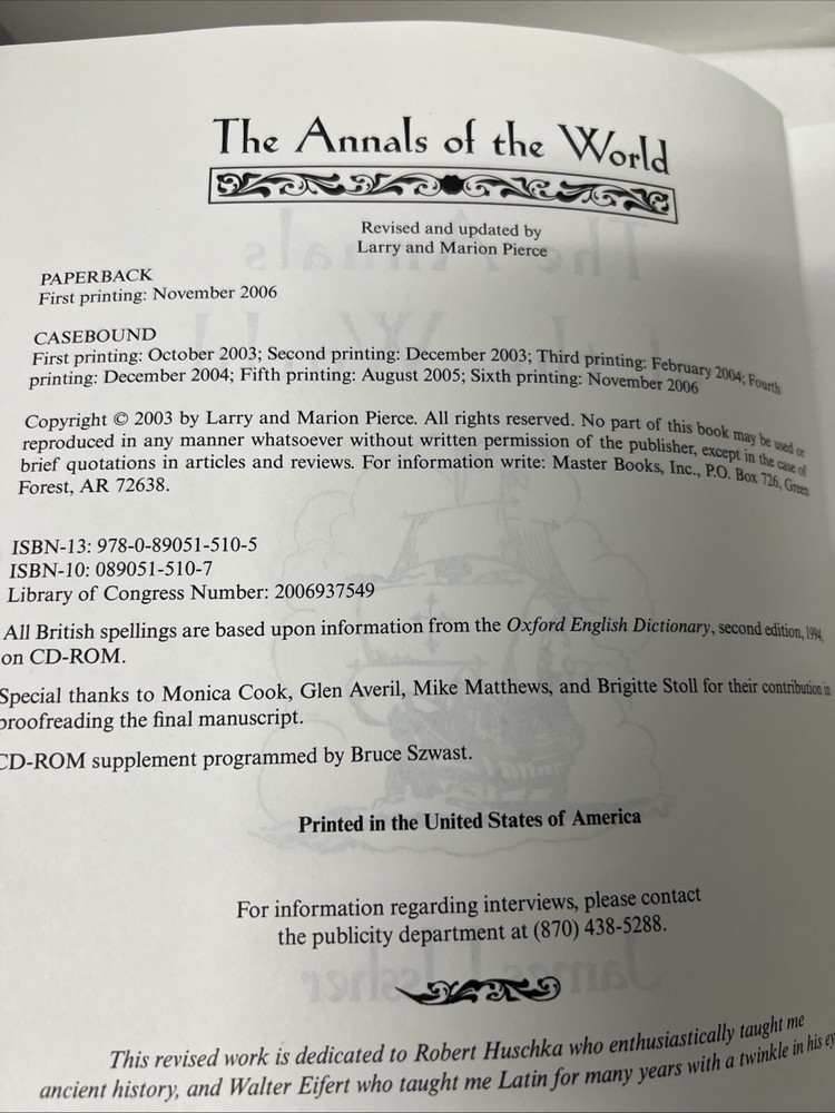 Discover the fascinating history of the world with "The Annals of the World" by James Ussher. This hardcover, leather bound textbook, published by New Leaf Publishing Group in 2007, is a perfect fit for those interested in religion and history. The book covers a wide range of topics including ancient and general history, reference, and biblical reference. With a length of 10.8 inches, a height of 2 inches, and a width of 8.2 inches, this book weighs 73.8 ounces and has 960 pages. Get your hands on this valuable resource today! This book is pre-owned but is in Very Good condition. See photos. There is some minor damage to one corner. This book includes a cardboard sleeve for protection, also in Very Good condition. See photos. All Items sold on this website were donated to Adullam International Ministries/Adullam House Thrift Store. Adullam House is a ministry that provides a home and education for our at-risk children, we are a true safe haven from the horrors of neglect and abuse. For some children it’s a short-term rescue, for others it will be a brand new permanent home. 100% of all sales goes to Adullam International Ministries. Your purchase today helps support our kids. Thank you and God bless you! "It's better to build children than repair grown-ups.”