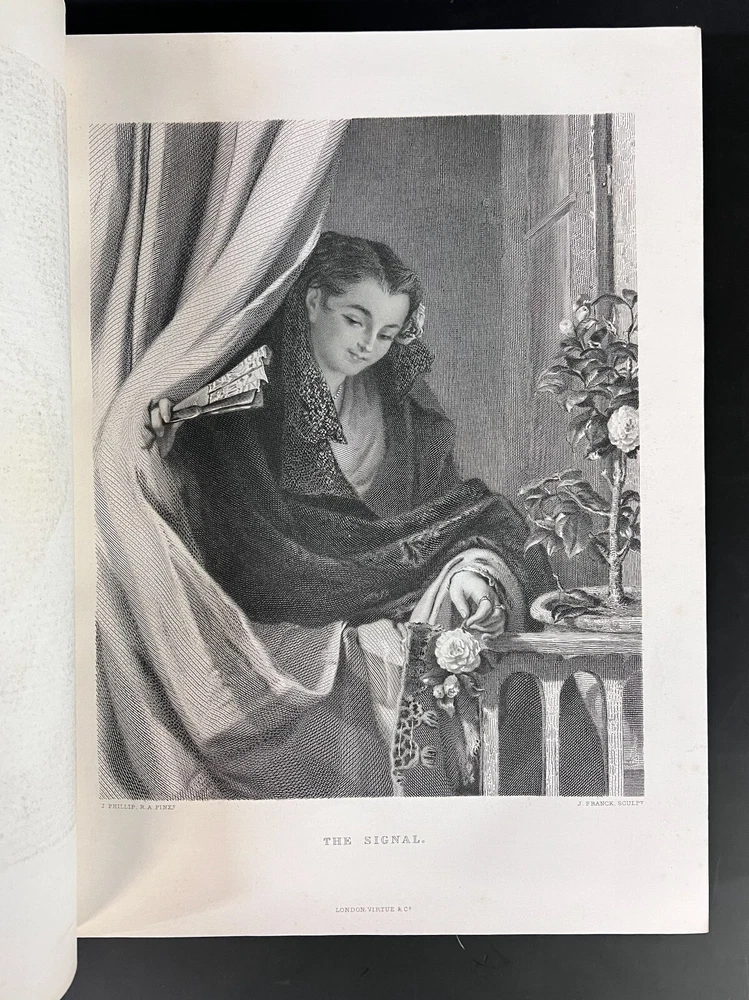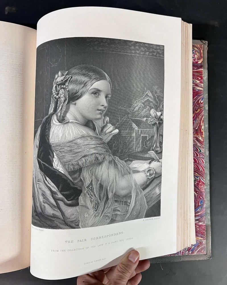 Description : The Art Journal 1867, New Series Vol VI, half calf on green textured boards, raised bands, stamped gilt titles on spine, marbled end papers. Bindery by George Evans. Published Virtue & Co., London. Engraved illustrations. Various artists and engravers. 6lbs Measures Approx.: 10 x 13.25 x 1.5 inches Condition: Good condition, covers discolored, wear at joints and edges, slight lifting at joint at the front bottom. Some toning and spotting, mostly to front pages. PHB1667 We have a fine selection of quality items for sale at Amphora Art & Antiques. International as well as domestic customers are welcome - please contact us with questions regarding shipping or listings, and we will assist you quickly. All items can be inspected in-person or are available for pickup from our large Wilmington, CA warehouse with no additional fee or charge. The authenticity of all items listed are guaranteed to be as represented - all efforts are taken to ensure accurate and descriptive condition reports and photographs. We reserve the right to use another shipping carrier other than what is listed to ensure your purchase arrives safely. Fedex cannot ship to a P.O. Box. Please contact us before or upon purchase if you have a preferred shipping carrier.