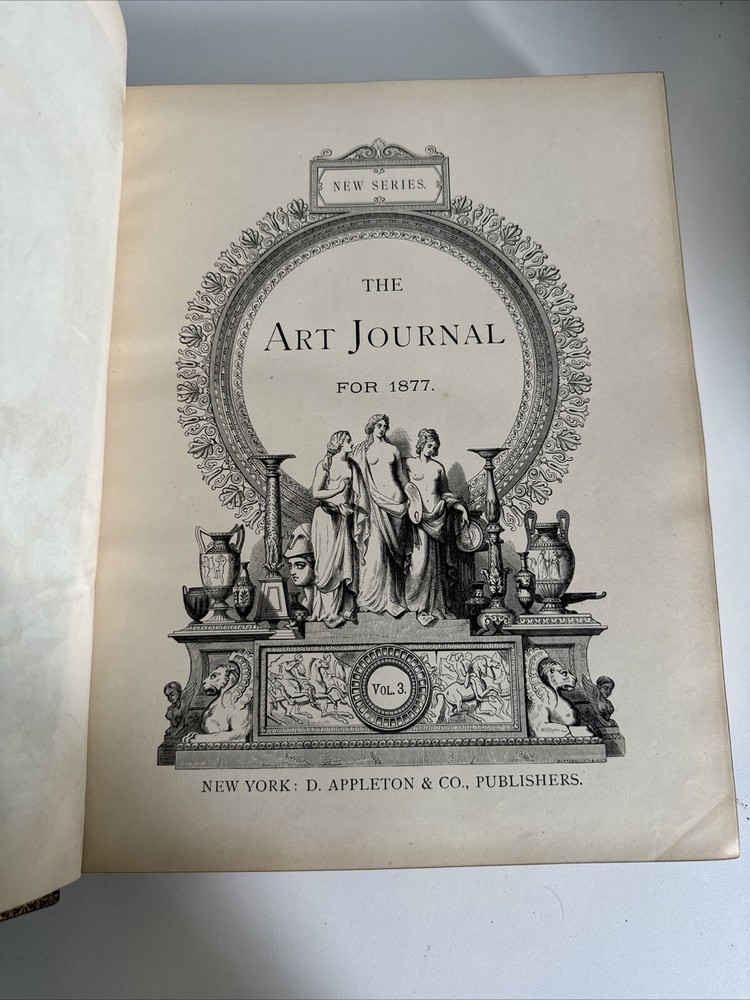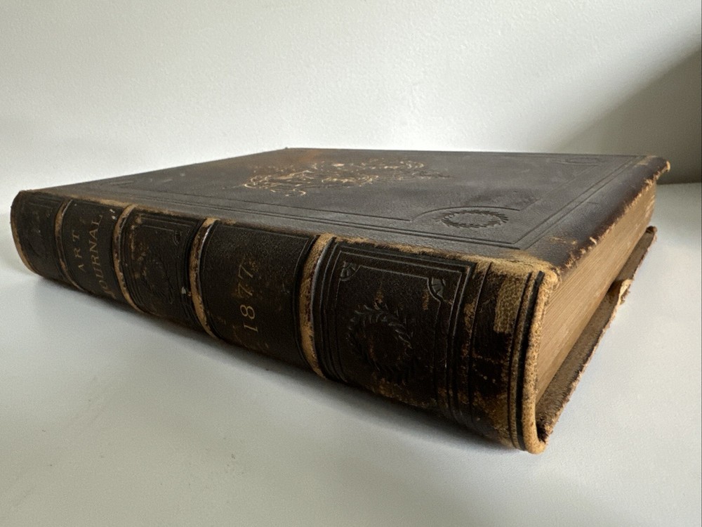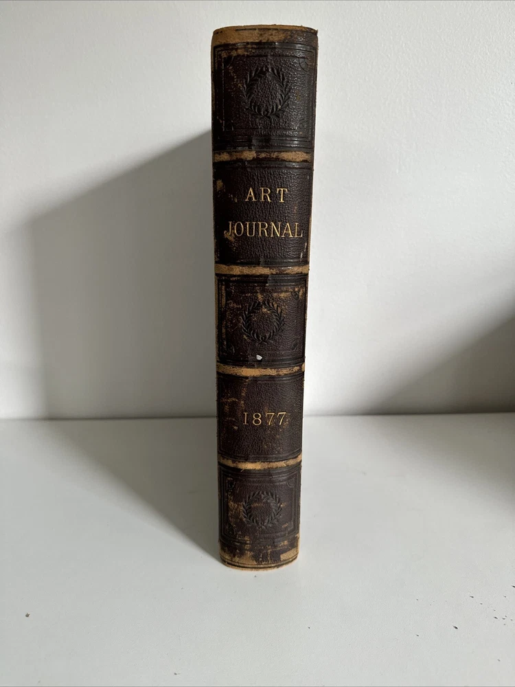 Art Journal 1877 - Volume 3 Large, leather bound book containing 384 pages and many illustrations and full page engravings. This gorgeous antique book remains in very good condition overall. Binding is intact. Some general shelf and age wear. Some age coloring to pages. See photos! Shipped for FREE!