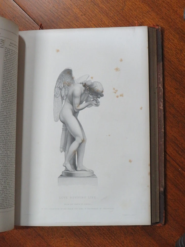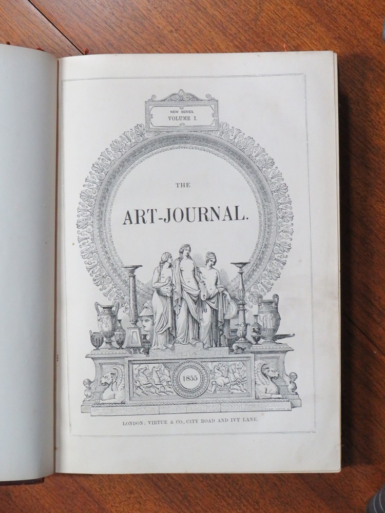 The Art-Journal. New Series. 1855 - J. S. Virtue & Co Ltd., leather bound, RARE A rare, complete edition from 1855 of the first volume in the Art Journal’s “New Series”. This features 24 engravings from the Royal Collection of Queen Victoria and Prince Albert, and 12 of sculptures. Additionally, 1855’s supplement celebrating The Paris Exhibition of Industrial Arts is present and complete at the volume’s rear. The Art Journal was the most important British 19th-century magazine on art. It was founded in 1839. It was published in London but its readership was global in reach. Hodgson & Graves hired Samuel Carter Hall as editor of Art Union Monthly Journal, assisted by James Dafforne. Hall soon became the principal proprietor but was unable to turn a profit on his own. The London publisher George Virtue bought a share of the business in 1848, with Hall remaining as editor, and they renamed the periodical The Art-Journal in 1849. Quarter leather bound hardback, decorated endpapers, gilt pages, 36 full page plates and hundreds of other illustrations, 320pp. + 46-page illustrated supplement, 8-page intro., 20-page appendix Condition: Mostly good with some flaws - edgewear to covers and split to spine (though spine is attached firmly and not loose), good binding and mostly good to VG pages. Damage to page 189 and previous plate from spilled drink, minor age spotting and ageing to some pages and plates. All plates checked and present. ISBN: N/A Published: London: Virtue, 1855 Weight: 2870 gms (over 3kg packed). NB: free postage inside Australia, due to weight this may be very expensive to send internationally. Size: 33 x 25 cms. Don't forget to check out our other items at Tony Mack Books