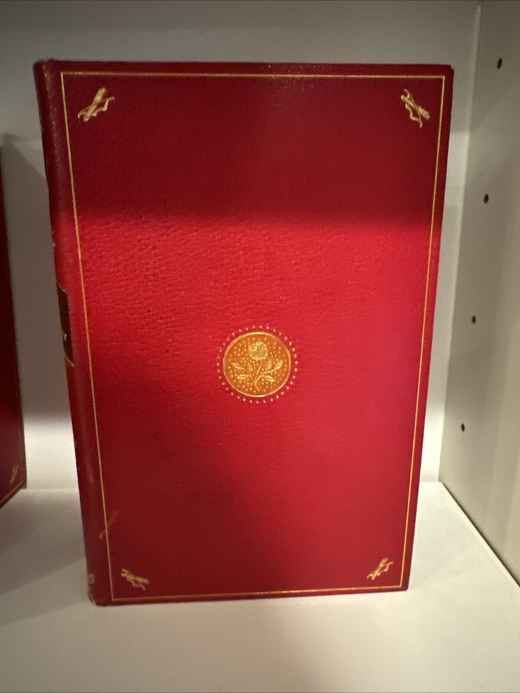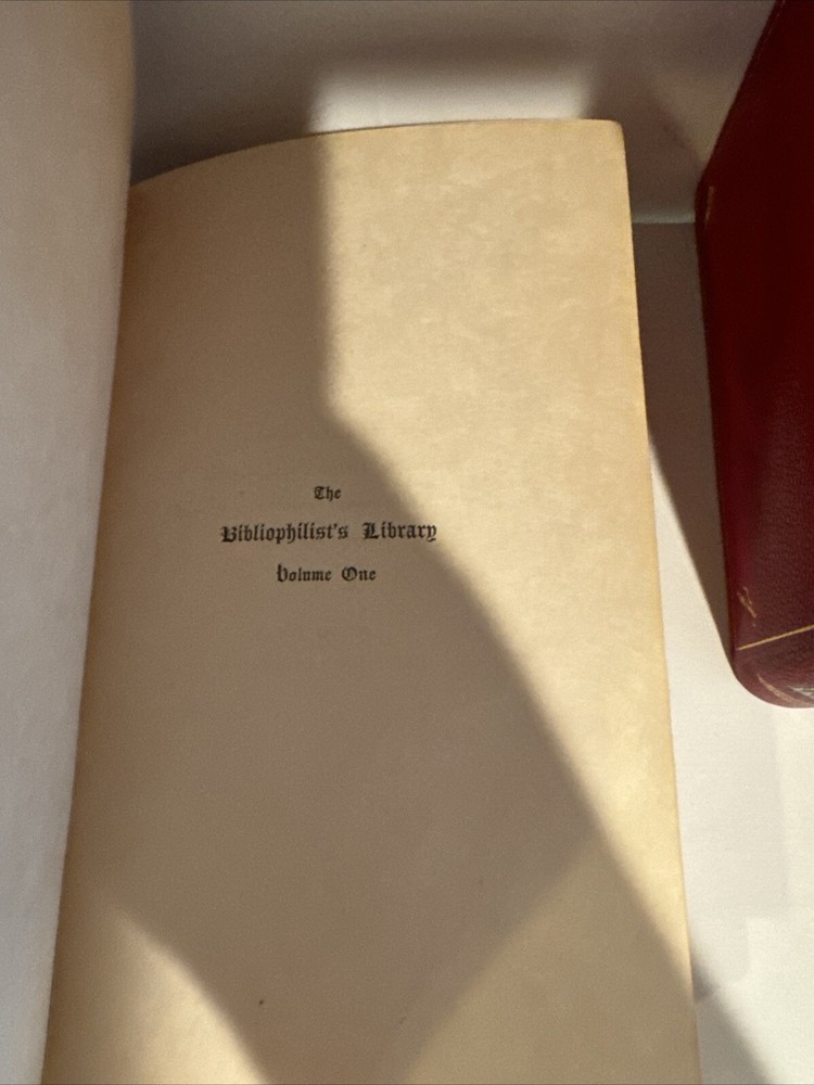 Incomplete set of The Bibliophilist's Library, published by George Barrie. Containing a specialized red leather binding. c. 1890s. All volumes numbered 43 of 100 copies printed for sale. Leather covers contain minimal rubbing and shelf wear. Interior pages are in very good condition and unmarked. Volumes Included: Series Volume 1: The Decameron of Giovanni Boccaccio Volume I Series Volume 2: The Decameron of Giovanni Boccaccio Volume II Series Volume 3: The Heptameron of Marguerite d'Angouleme Queen of Navarre Volume I Series Volume 4: The Heptameron of Marguerite d'Angouleme Queen of Navarre Volume II Series Volume 4: The History of Gil Blas of Santillana Volume I Series Volume 5: The History of Gil Blas of Santillana Volume II Series Volume 5: Persian Letters Volume I Series Volume 6: The History of Gil Blas of Santillana Volume III Series Volume 6: Persian Letters Volume II Series Volume 7: The Confessions of Jean-Jacques Rousseau Volume I Series Volume 8: The Confessions of Jean-Jacques Rousseau Volume II Handling cost covers insurance cost. JK- Ebay Shelf 3-a