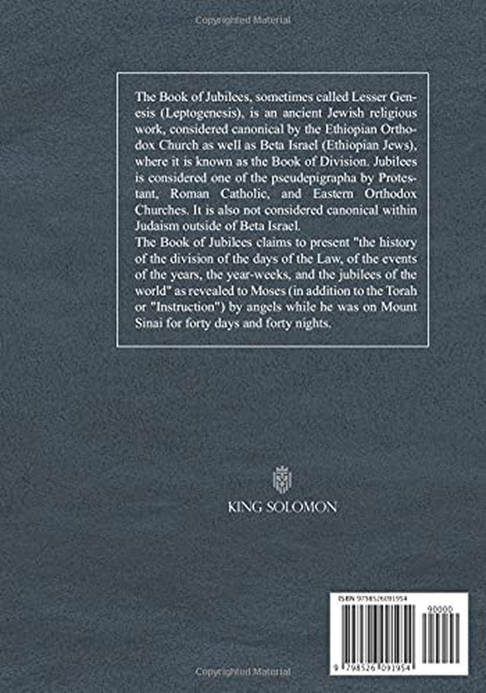 Store New Arrivals Add to Favorite View Feedback Contact The Book of Jubilees Description Publisher Independently published (June 24, 2021) Paperback 119 pages Dimensions 7 x 0.3 x 10 inches Language English Item Weight 8 ounces ISBN-13 979-8526091954 The Book of Jubilees , sometimes called Lesser Genesis (Leptogenesis), is an ancient Jewish religious work, considered canonical by the Ethiopian Orthodox Church as well as Beta Israel (Ethiopian Jews), where it is known as the Book of Division. Jubilees is considered one of the pseudepigrapha by Protestant, Roman Catholic, and Eastern Orthodox Churches. It is also not considered canonical within Judaism outside of Beta Israel. The Book of Jubilees claims to present "the history of the division of the days of the Law, of the events of the years, the year-weeks, and the jubilees of the world" as revealed to Moses (in addition to the Torah or "Instruction") by angels while he was on Mount Sinai for forty days and forty nights. ABOUT US We offer the best prices around on high quality products. Our E-store includes media such as books, movies, music and games while offering electronics, toys, sporting apparel, clothing, tools, general home, garden items and more. SHIPPING We are always working hard to ensure your package arrives as soon as possible. Please understand that some factors like weather, high postal traffic, and the performance of shipping companies are outside of our control. We offer free shipping to the lower 48 states and ship within 2 business days of payment, usually sooner. We do not accept P.O. Boxes. Please provide a physical address. For shipping outside of the continental USA, we only use eBay's Global Shipping Program.The item is shipped to KY and then sent to the rest of the world. International customers are responsible for all duties and taxes. Continue to check out in order to calculate costs for shipping the item to your country. Messages regarding eBay's Global Shipping Program MUST be directed at eBay EXCLUSIVELY. RETURNS We offer a 30-Day Return Policy on items which you are not completely satisfied with. You have the option for a full-refund or an exchange of the item. No returns are available on items shipped outside of the USA. PAYMENT We accept PayPal. CONTACT US This page content is yet to come Please ad us to your favorite seller and visit again later Thank You CUSTOMER SATISFACTION We try our very best to make sure every customer is completely satisfied. If there's a problem, message us! We're happy to help. WE ACCEPT Copyright © 2021 AutoDS. | All Rights Reserved