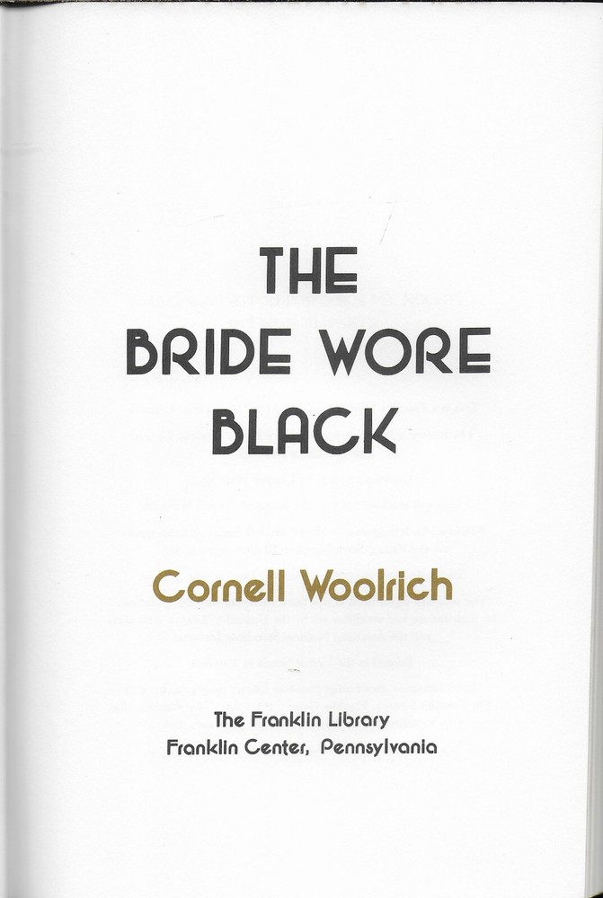The Bride Wore Black by Cornell Woolrich , Franklin Mystery, Leather Bound Edition The Franklin Library , Franklin Center, PA published the book special contents copyright 19 8 9 . It is part of their Franklin Mystery series. The interior, the beautiful leather cover, and attached silk bookmark are in fine condition. There are no tears, marks, or bookplates . The page ends are richly gilded to seal out moisture. The book is 6” x 8 7/8 ” tall and 2 13 pages plus colophon. Only the leather bound Franklin Mystery titles have an attached bookmark. Many sellers incorrectly call the leatherette bound books as leather bound books. The double spread frontispiece is by Gary Kelly . Please if you need any additional information and photos, eBay message me. Combine Shipping Discount!!!!! Save money when you buy more than one item (lot) from us! Except in rare cases, s & h to a U. S. address via media mail in the same box is $1. 35 for each additional book. eBay may automatically send a combine invoice with the wrong s & h. Please wait to pay until you receive my combine invoice with the correct s & h. PLEASE CHECK OUT MY eBAY STORE AND OTHER AUCTIONS!!! 1 23 2024 112 024