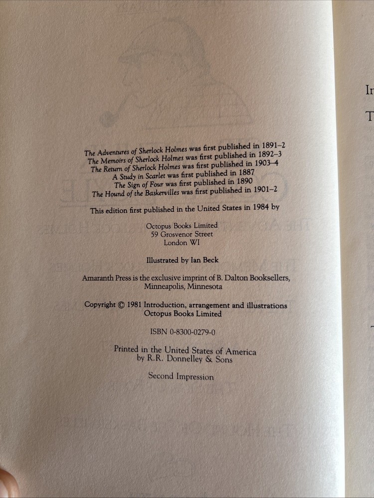This bonded leather edition is a stunning collector's piece—classic Holmes stories in a beautifully crafted hardcover. The vintage 1984 Amaranth Press release feels luxurious and timeless, perfect for any bookshelf. A must-have for fans of Doyle’s brilliant detective tales!
