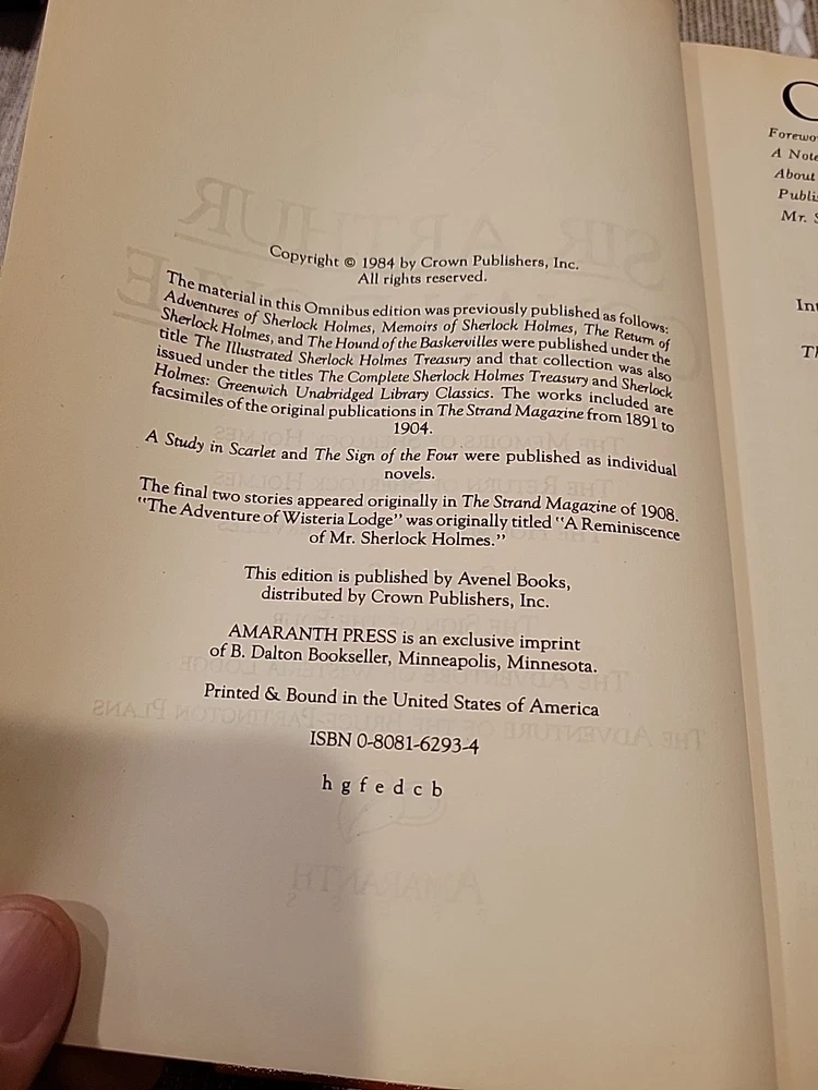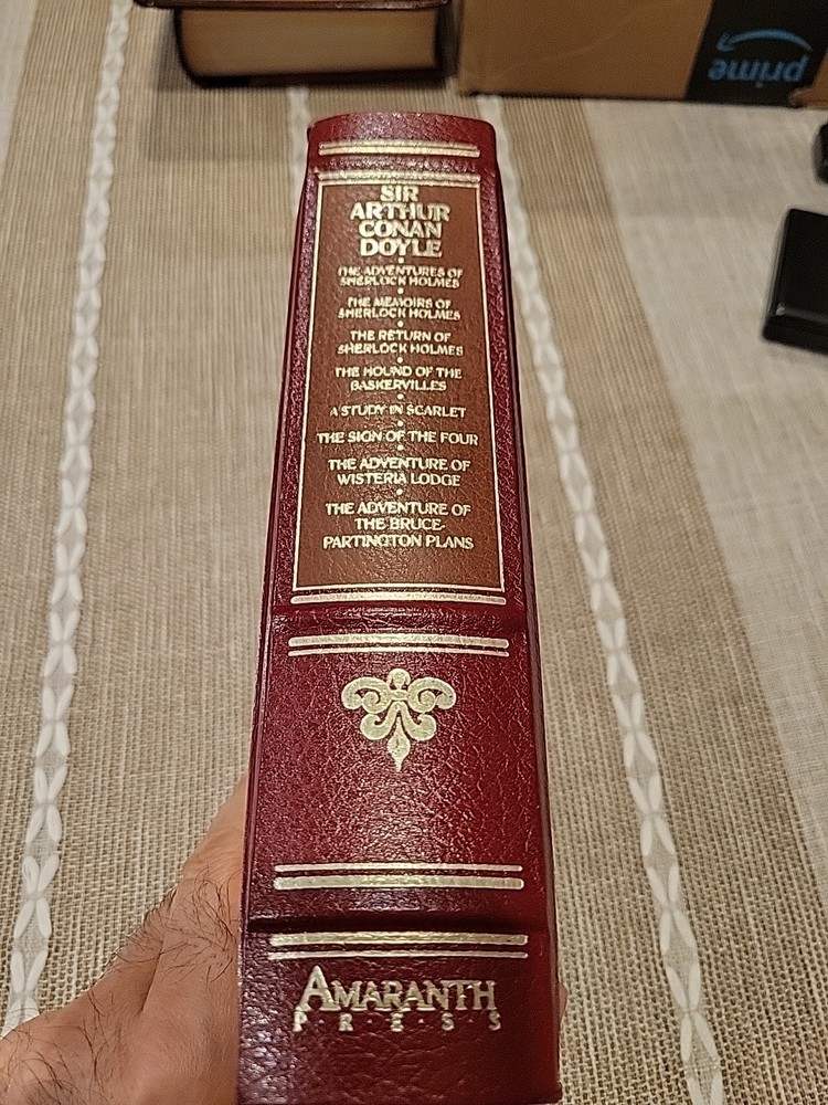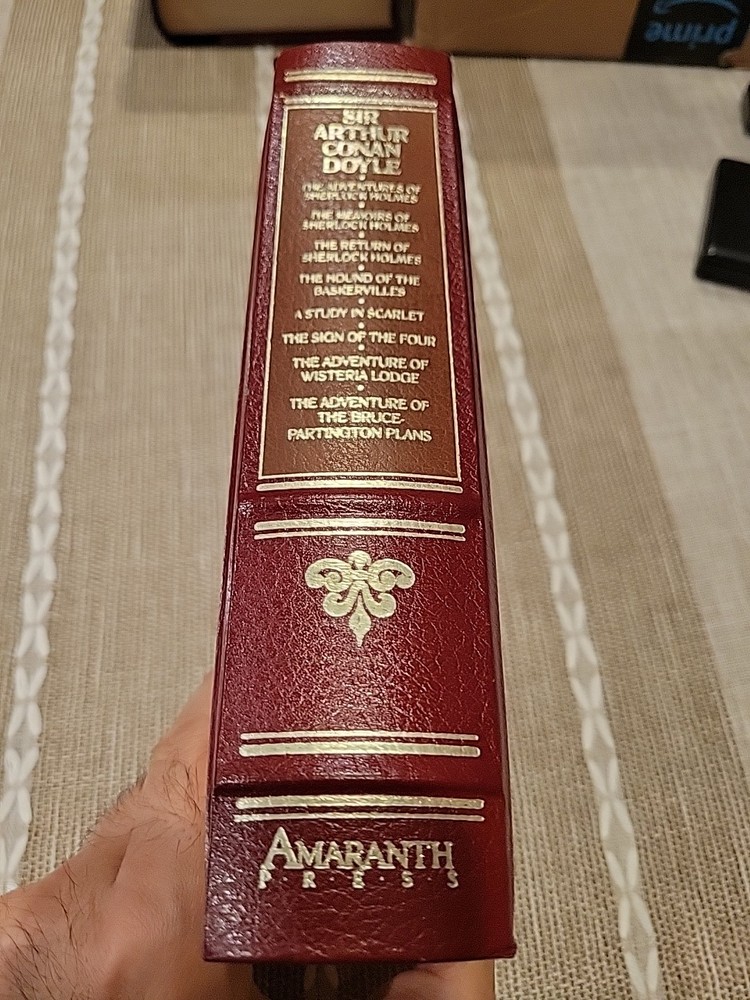 Dive into the world of deduction with "The Celebrated Cases of Sherlock Holmes" by Sir Arthur Conan Doyle. This collector's edition, published by Amaranth Press in 1984, offers a luxurious leather-bound format that appeals to both young adult and adult readers. The stories within are a testament to the timeless allure of the Sherlock Holmes series, showcasing the skill of Conan Doyle in crafting classic detective fiction. Each tale in this compendium is a vintage treasure, presenting itself in English with no inscriptions or ex libris markings. The book is a proud representation of 1980s publishing, boasting a narrative type that remains engrossing to this day. Indulge in the intellectual pursuit of Holmes' enigmatic world, free from the influence of signatures or personalization, and let the brilliant detective tantalize your mind with his celebrated cases.