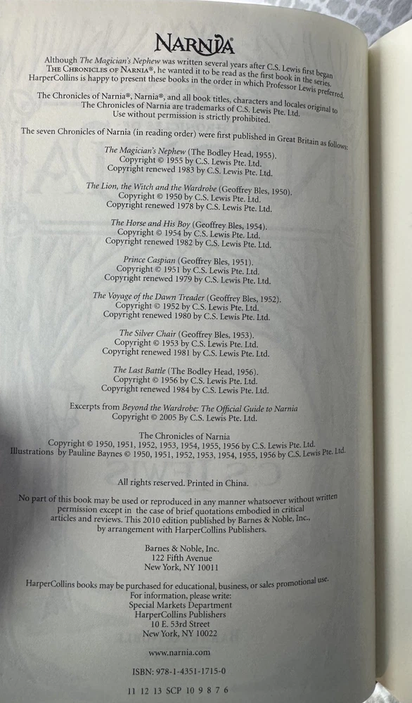 | Book Title | Chronicles of Narnia |