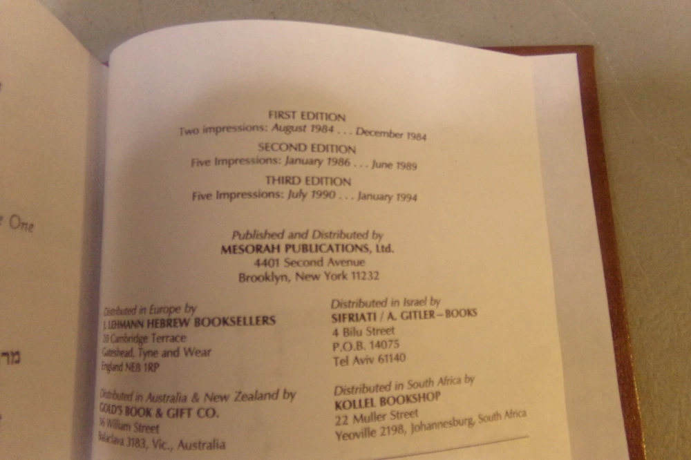 The Complete ArtScroll Siddur: HC 1994 Mesorah Series Very Good, ( small cover edge indentation. SEE PICTURE small top edge binder corner indentation. Hard Cover,