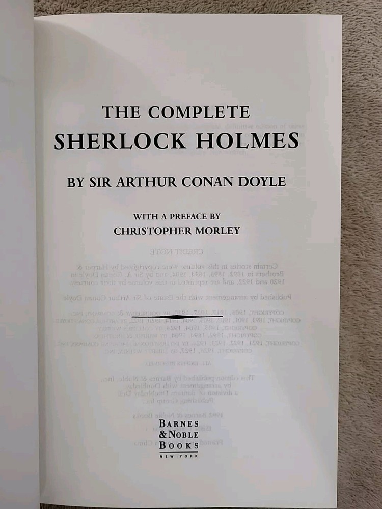 Immerse yourself in the world of deduction with "The Complete Sherlock Holmes" from Barnes & Noble. This edition, published in 1992, brings together all the tales and adventures of the iconic detective created by Sir Arthur Conan Doyle. The book features gilt edges and a luxurious leather binding that exudes classic elegance, making it a fine addition to any literary collection. Explore the English language narrative that has captivated readers for over a century. The "Complete Sherlock Holmes" compiles the brilliant escapades of Sherlock and his trusted ally Dr. Watson, offering a journey through mysteries and puzzles that have stood the test of time. This collection is a must-have for fans of crime stories and the legendary legacy of Sherlock Holmes.