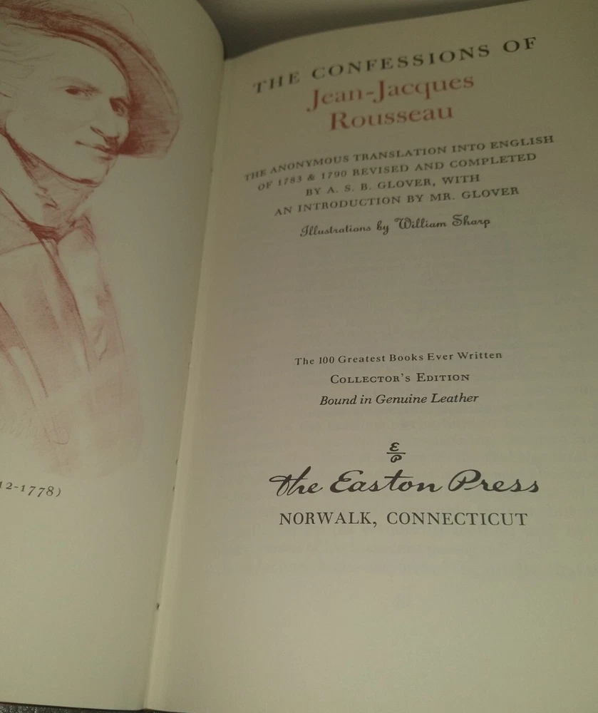 The Confessions of Jean-Jacques Rousseau ~ Leather Bound ~ Hardcover ~The gold edges have a few scuff marks. Please see the pictures. Otherwise in great condition.