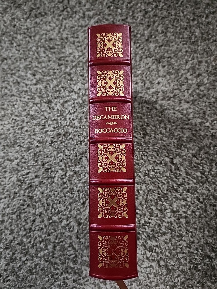 Delve into the enchanting world of Giovanni Boccaccio with The Decameron, presented in a luxurious leather-bound Collector's Edition by Easton Press. Published in 1980, this masterful work of literature is adorned with illustrations by Fritz Kredel, adding a visual feast to the poetic narrative. The text is in English, ensuring accessibility to a broad audience, while preserving the originality and essence of Boccaccio's masterpiece. This collectible piece is a treasure for both literary enthusiasts and art aficionados. The book's craftsmanship is a testament to the timeless beauty of literature and fiction, with its origins in Norwalk, Connecticut. It is an original work, bound to captivate readers with its compelling storytelling and rich illustrations.
