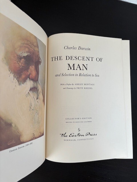 The Descent of Man by Charles Darwin. Illustrated by Fritz Kredel. Published by The Easton Press in 1979. Collector's Edition Bound in Genuine Leather. The condition is Fine.