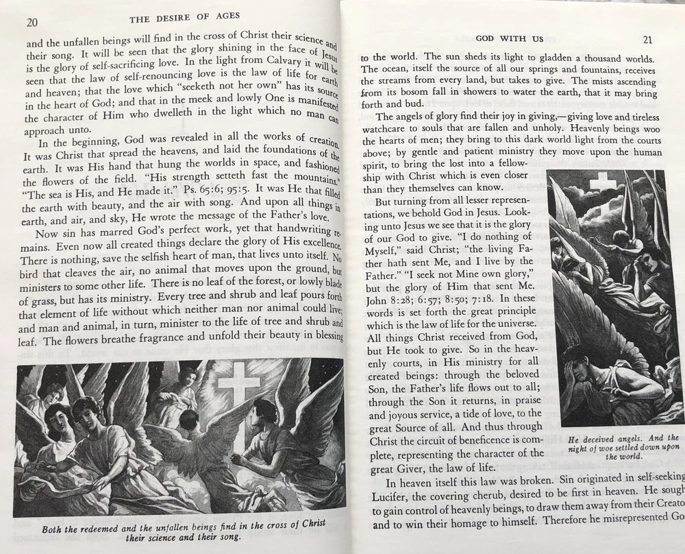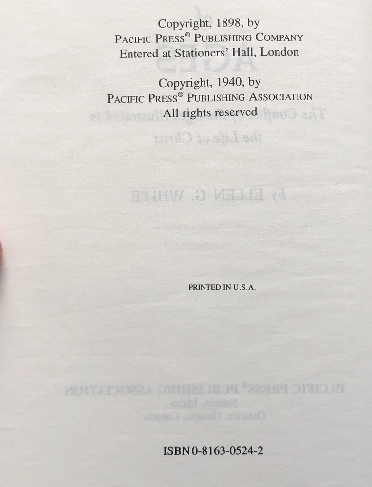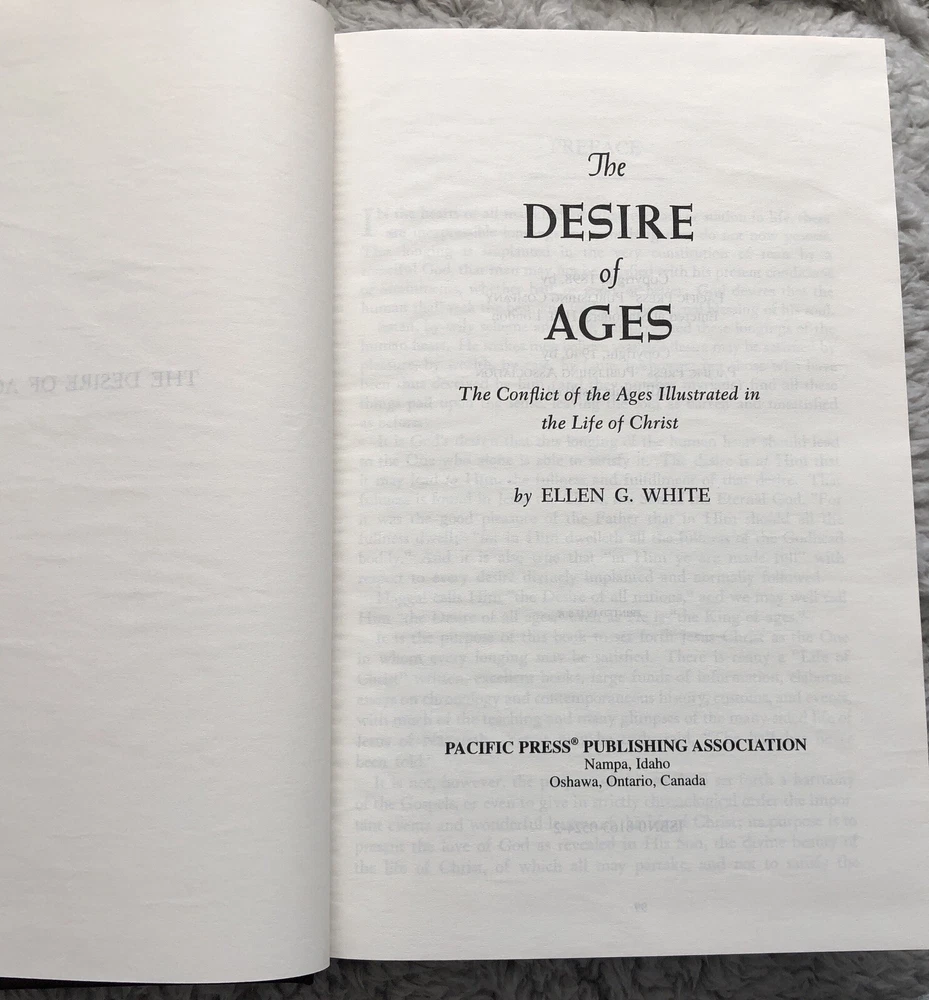 Delve into the pages of "The Desire of Ages" by Ellen Gould Harmon White, a timeless piece that offers a profound exploration of New Testament characters and stories from Acts, intertwined with insights into the life of Jesus. Published in 1940 by Pacific Press Publishing Association, this maroon hardcover edition is a treasure for both collectors and those seeking spiritual enlightenment. With 863 pages of rich content, this book from the "Conflict of the Ages" series is intended for an adult audience and presents itself in a faux leather format. Beautifully illustrated, it is a limited edition vintage item that is sure to be a meaningful addition to any Christian reader's library. Maroon faux leather Hardcover. 863 pages. 8-1/4" x 5-7/16" x 1-1/4". Condition is good. Shipped via USPS Media Mail. A portion of the proceeds from the sale of this listing will go towards an annual scholarship for a worthy student at Milton-Stateline Seventh-day Adventist School in Milton-Freewater, Oregon.