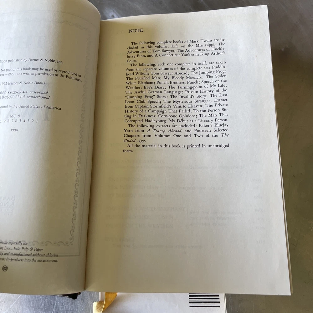 The Family Mark Twain Barnes & Noble Bounded Leather is a must-have for any book collector. This classic piece of literature written by Mark Twain is bound in high-quality leather and features a beautiful design. The book contains a wealth of knowledge on various subjects, including language and literature, making it a perfect addition to any collection. The author's captivating writing style and the book's collector's value make it a great investment that will last for years to come.