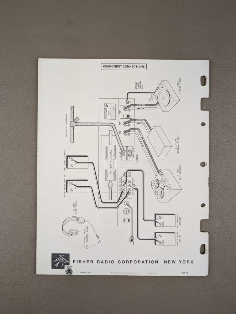 The Fisher 175-T Stereo Receiver Service Manual This manual/schematic is gently used and may have slight yellowing/patina. Corners and edges may have light wear, light bends. Professionally packaged between 2 cardboard stock sheets and placed inside of a plastic sleeve inside of mailer for effective protection in shipping. No P.O. boxes please!