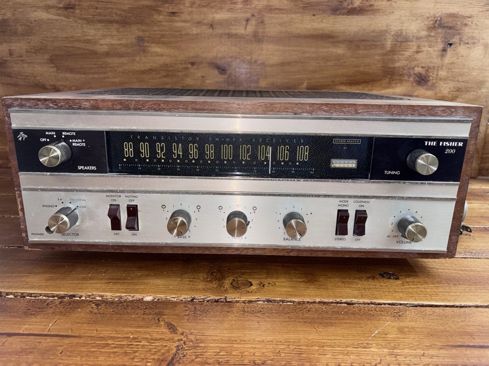 The Fisher 200-T 1960s Transistor FM Multiplex Stereo Receiver Turns On *READ Turns on but no further testing done on the receiver. Last used was a few years back, and the right channel was weak but did operate at the time. THIS UNIT NEEDS SOME WORK AND IS SOLD AS IS (cosmetic repair and electrical repair needed). See photos. Ships quick and for the cheapest possible. Due to shipping costs, I will not be able to accept returns on this item, thank you.