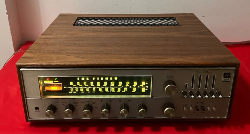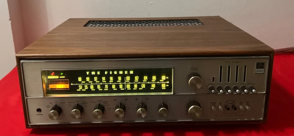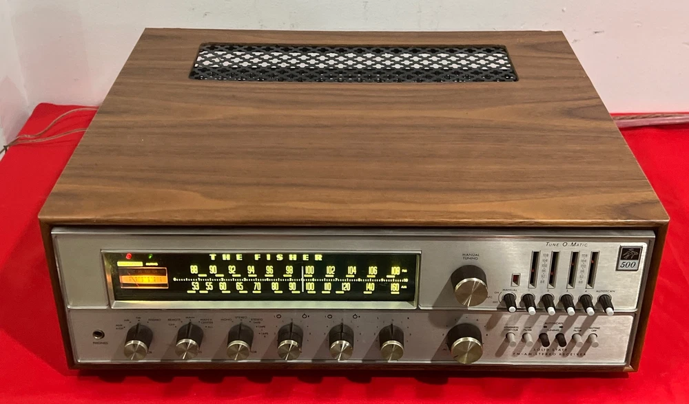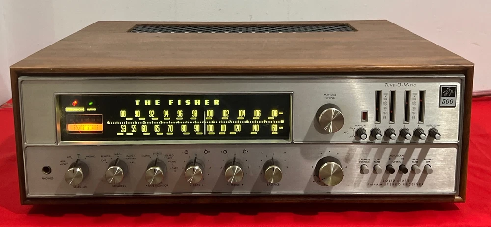 The Fisher 500-TX Stereo Receiver Auto Tune-O-Matic Solid State With Wood Case selling tested in working condition , being sold in used vintage condition with some signs of wear due to age please look at the pictures for cosmetic condition please look at the pictures , feel free to email me if you have any question that i can answer Estate find as you can see the pictures previous owner had something change on the unit , look at the pictures very close please some capacitors and power supply and new LED light not shipping to HAWAII , ALASKA , PUERTO RICO , VIRGIN ISLAND , PO BOX OR APO ADDRESS will be ship with fedex ground properly pack with insurance and signature required final sale no return no refund