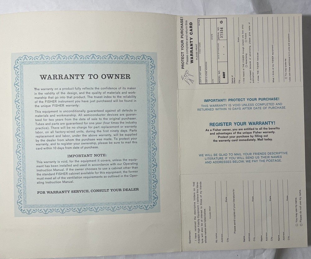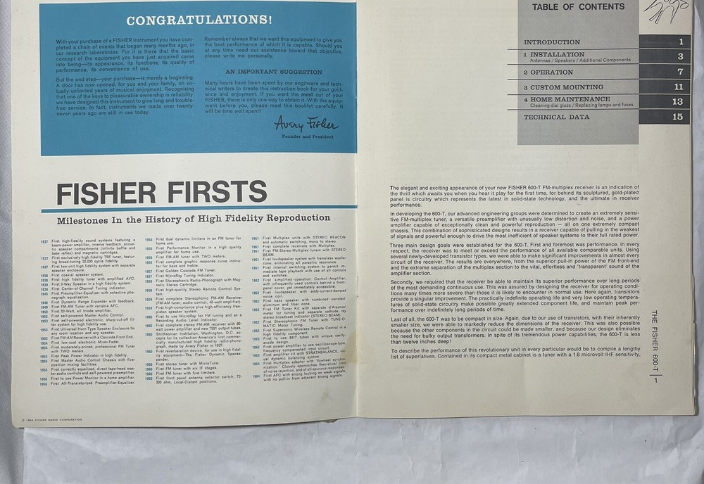 The Fisher 600-T | Stereophonic FM-Multiplex Receiver | Operating Manual Please take advantage of the zoom feature on the photos to judge cosmetics for yourself. _______________________________ What you see in the photos is what exactly you receive. If it's not pictured it's not included. Please see the photos and make your own assessment and don’t hesitate to contact us if you have any questions. Shipping: We ship all items within 1 business days of receiving your cleared payment. (Excluding weekends and holidays) Additional shipping fees will apply for all Alaska, Hawaii and U.S. Territories (Guam, Puerto Rico, Virgin Islands and etc.) shipments. To ship a large item to PO boxes, APO or AFO zip code also will be charged additional shipping fees. Feedback: We aim to earn positive 5 stars feedback for every item. If you happy with your purchase please take a minute to leave positive 5 star feedback. If you have any issues with your purchase please contact us directly using eBay massage service to resolve the issue so that we can earn your positive 5 star feedback. Buy with confidence. We treat all our customers with fairness and professionalism. We do not misrepresent our items and if you need us after your purchase, We are right here and will do everything in our power to help you to enjoy the product. For orders with the Free Shipping we reserve the right to select the best method for the shipment. M