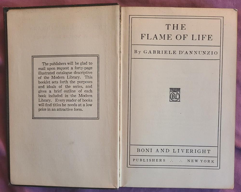 The Flame Of Life by Gabrielle D’Annunzio (Leather Bound 1919). Please view all photos. Stored in a clean and smoke-free home!...