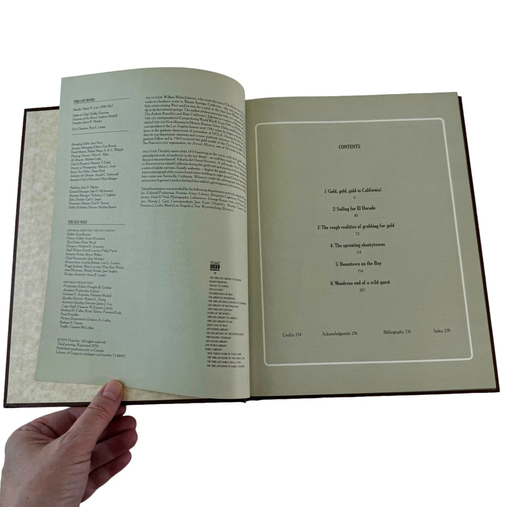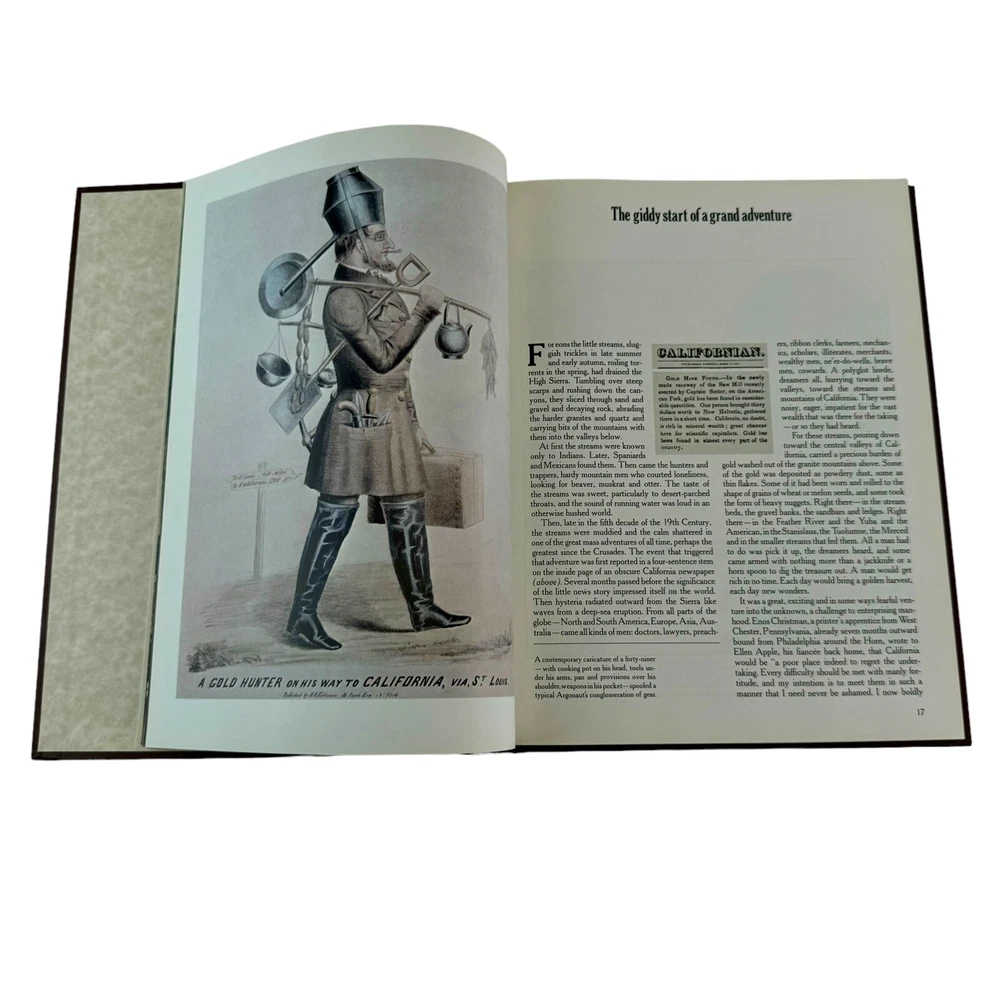 The Forty-Niners Old West Time Life Book Series Vtg Leatherette Hardcover 1978. Beautifully illustrated, this book tells of the Forty-Niners during the Gold Rush and their role in the settling of the Western United States. Condition is very good. Please review my pictures for a sampling of content and condition.