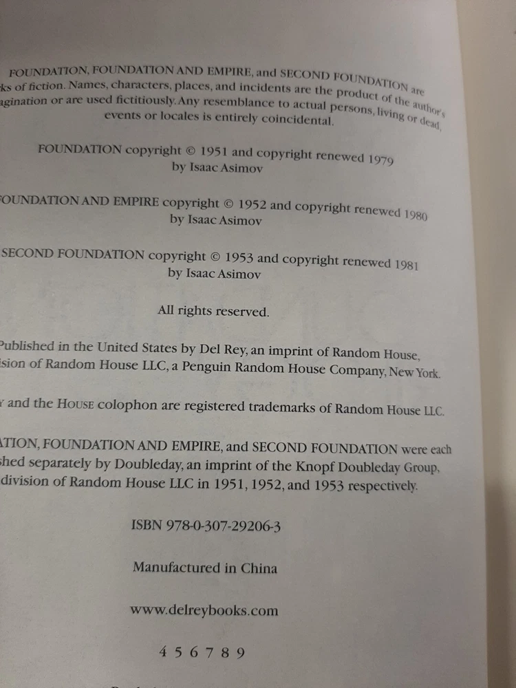 This Isaac Asimov Foundation Trilogy is a vintage collectible edition published by Bantam Books in 1953. The hardcover format is leather bound and contains 752 pages of science fiction and fantasy adaptations. The book title is a must-have for any collector of vintage books, and its aspects include the author's name, era, and genre. The foundation Trilogy is a classic piece of literature that will surely be a great addition to any book lover's collection.