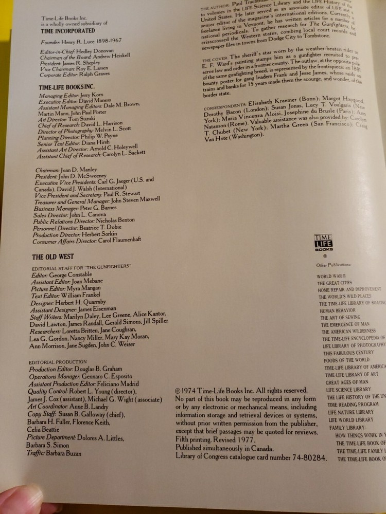 This is a vintage illustrated book titled "The Gunfighters" and "The Old West" series by Time Life Books. The book has a faux leather bound format and is in English language. It was published in 1977 and is suitable for adults. The book is not personalized, inscribed or signed, and does not have an ex libris. The book covers the 19th century and Westerns topic with illustrations and narratives. It is a nonfiction narrative type and was published in the United States. I am a retired senior trying to supplement my income by selling on eBay. I do combine shipping. However, please ask BEFORE purchasing your items. DO NOT PAY UNTIL I HAVE SENT YOU A COMBINED SHIPPING INVOICE. Please do make me a REASONABLE offer. I usually come down 5-10%. Will not respond to offers that are low ball. Payment is expected at time of purchase. eBay will cancel your order if not paid in a prompt manner. I DO NOT ship internationally. If you do not live in the USA or Puerto Rico, do not purchase.