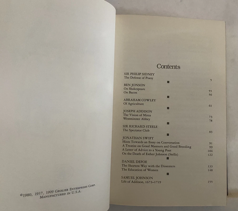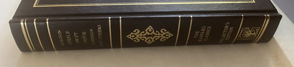 The Harvard Classics 1980 Leather Addison Steele Swift Defoe Johnson & Others. The book is in excellent to like new condition with the slightest of shelf wear. Appears to be unread. Shipped with USPS Media Mail and packaged carefully and securely (custom boxed) for safe delivery!
