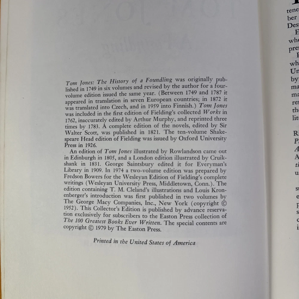 The History of Tom Jones A Foundling By Henry Fielding. Leather Bound. 1979. Shipped with USPS Media Mail.