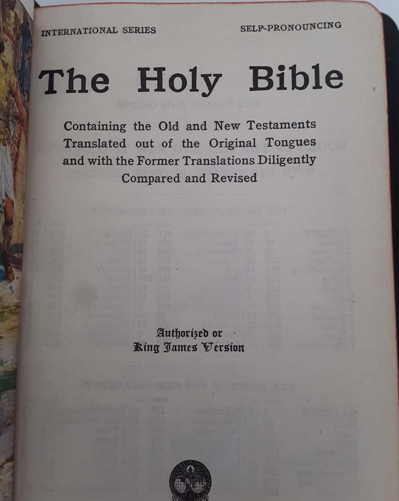 The Holy Bible International Series Self Pronouncing King James Verison John C. Winston Co No Publication Date Attached Place holder ribbon Gold gilt edges The Holy Bible containing the Old and New Testaments translated out of the original tongues and with the former translations diligently compared and revised.