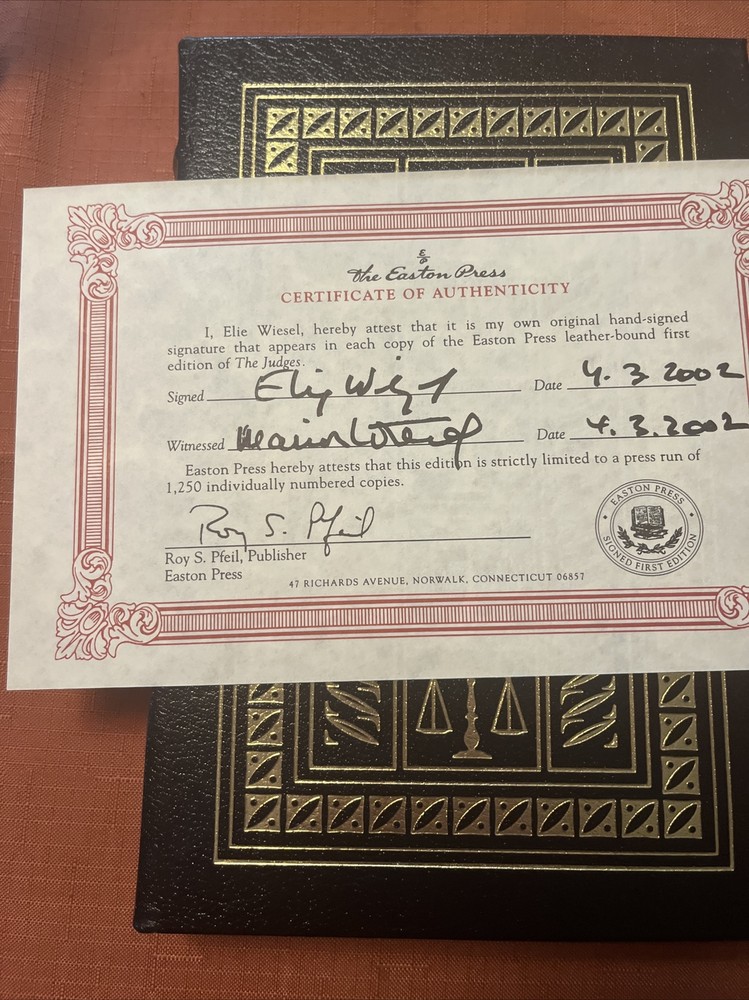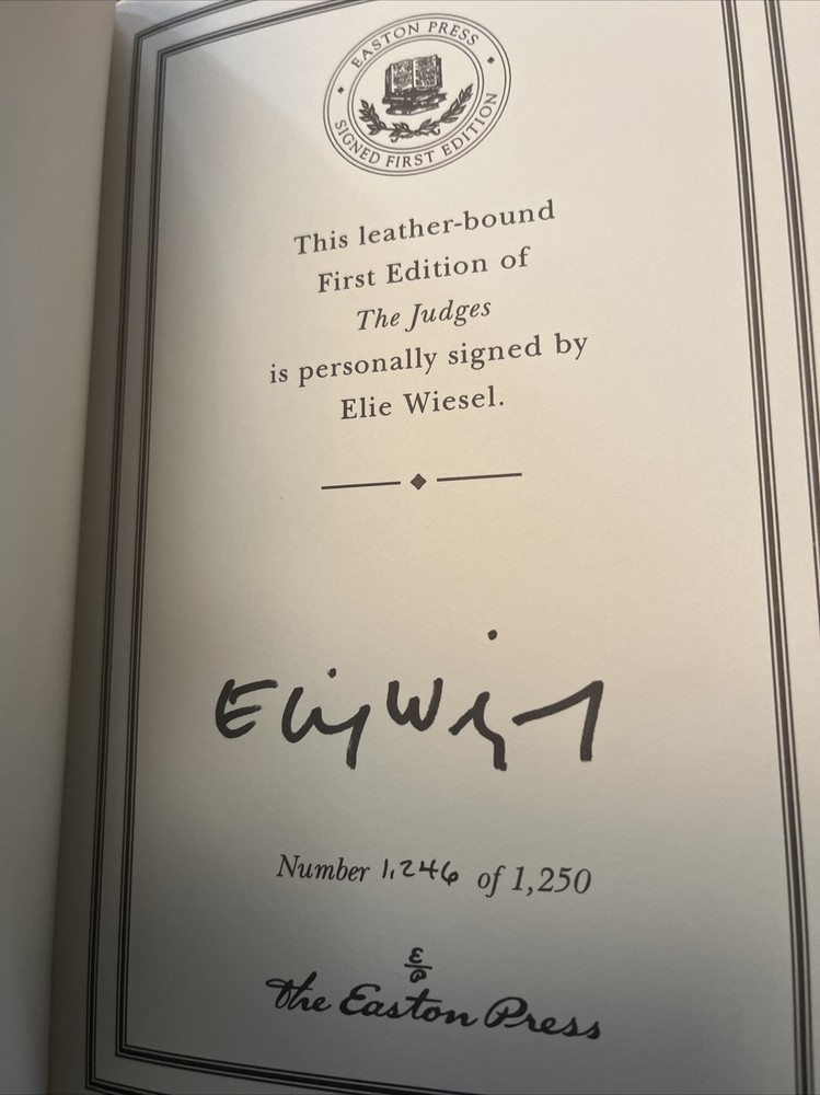 The Judges, Elie Wiesel, Easton Press, Signed First Edition, Bound in Genuine Leather, Like New, Number 1,246 of 1,250.