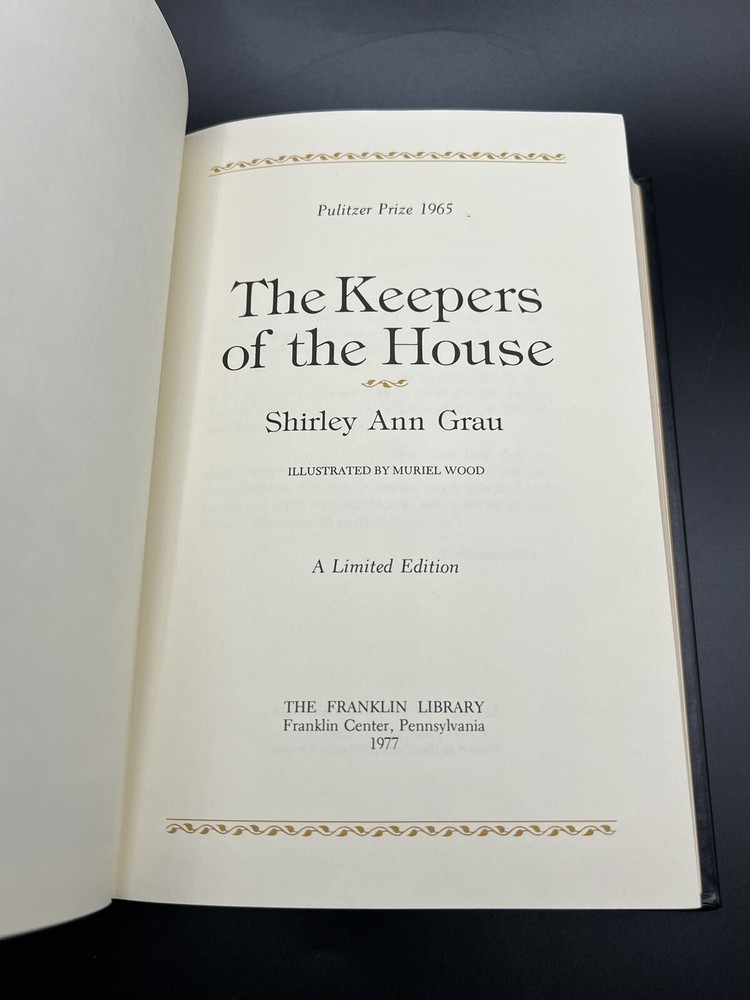 This rare and limited edition collector's copy of "The Keepers of the House" by Shirley Ann Grau is a must-have for any book collector or lover of classic literature. This original and beautifully illustrated book, published by Franklin Library in 1977, features a full leather cover and is a Pulitzer Prize winner. The book is in its original form and has not been modified, making it a valuable addition to any collection. The book is written in English, has no personalization, and is not signed. It covers a classic topic and was printed in the United States. The illustrator, Muriel Wood, beautifully brought the story to life with her art. This book is a great addition to any collection and a true gem for any book lover. Please checkout my other listings, I combine shipping and I’m open to any reasonable offers!!! Actual color may vary slightly based on screen colors, lighting, & camera. Terms: Payment to be received within 3 days of auction. Paypal or Credit/Debit Cards please. Please feel free to email with any questions. No returns will be accepted unless item is misrepresented. Please reference photos. From a smoke-free home. Thanks for looking, and having a great day!
