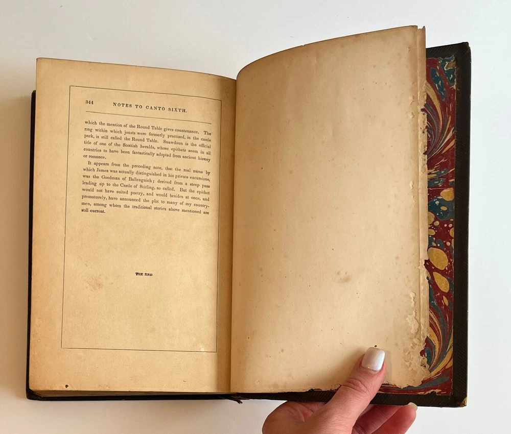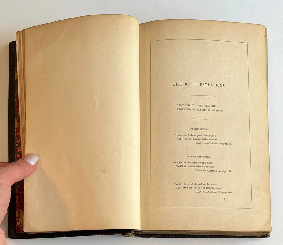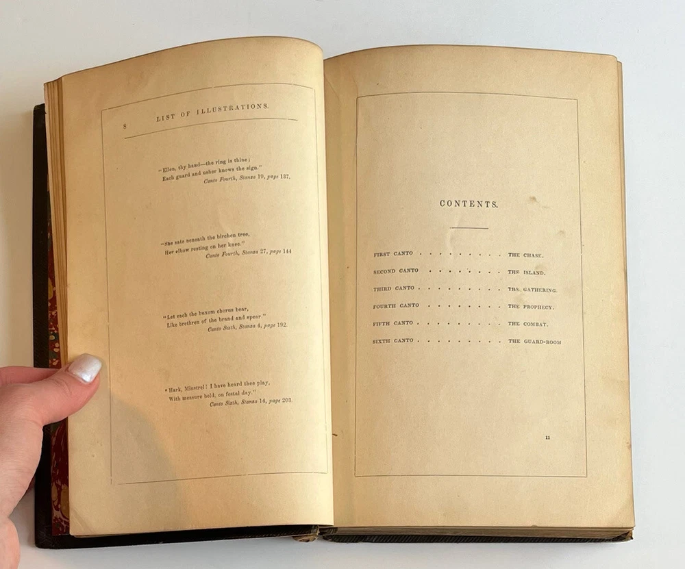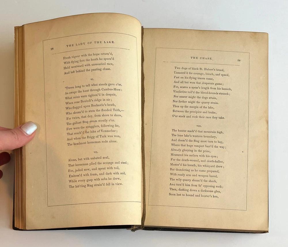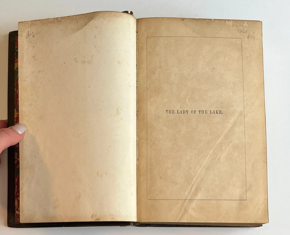 This beautiful antique edition of *The Lady of the Lake* has such classic charm! The leather binding shows its age with some peeling and wear, and there’s slight splitting at the spine, but all pages are intact—including the lovely illustrations. A true collector’s piece for fans of Scott’s work, full of history and character. The gilt detailing still shines, making it a stunning display piece. Just be sure to check the photos to appreciate its unique, well-loved condition. A treasure for any vintage book lover!