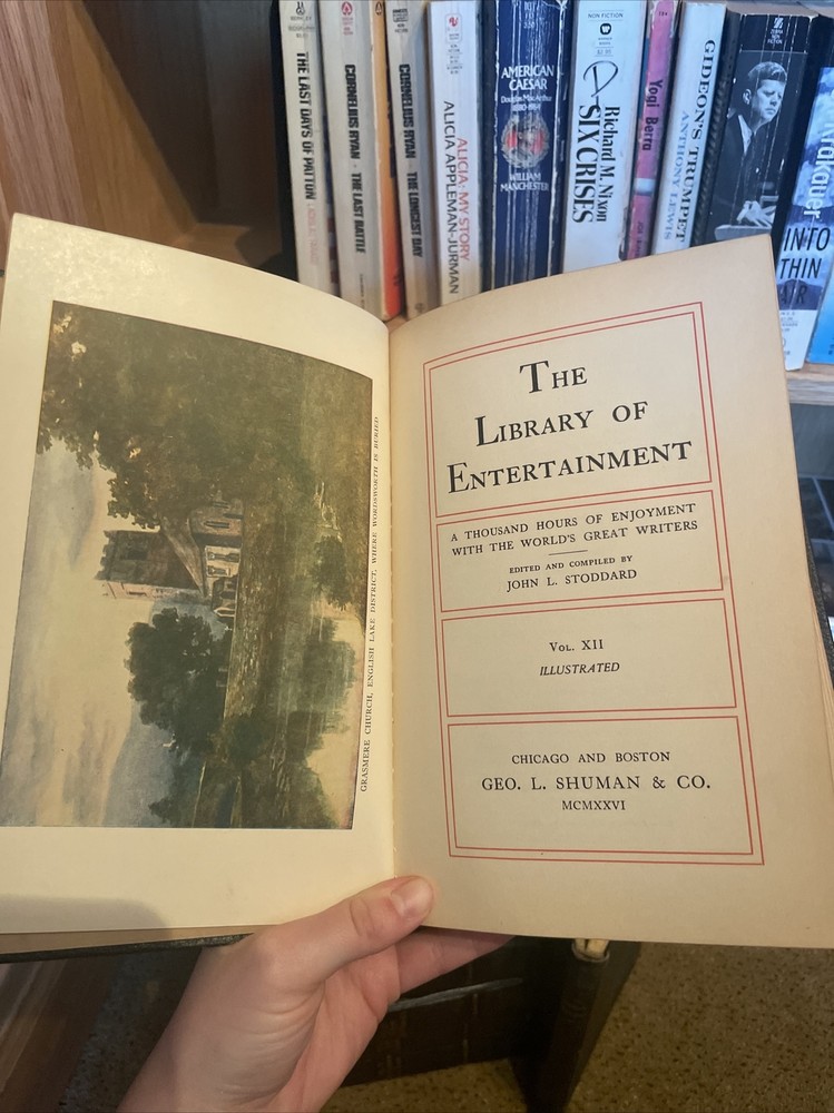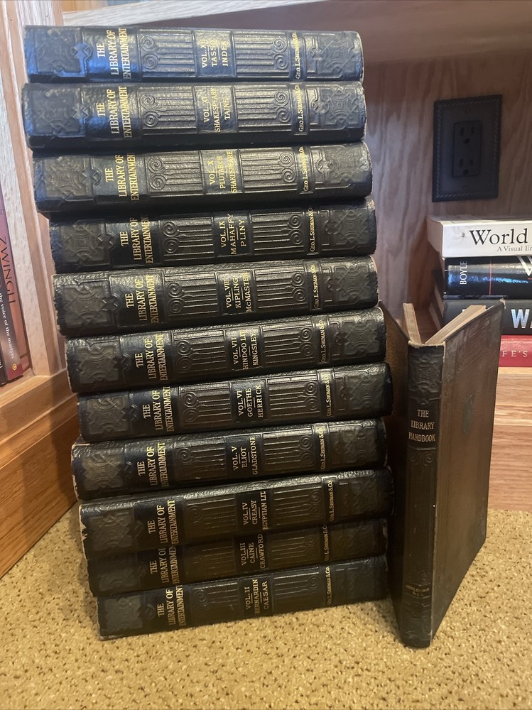 This antique book series is a thousand hours of enjoyment with the world’s greatest writers. The leather binding on these 1-12 volumes has kept these books intact and in good condition.