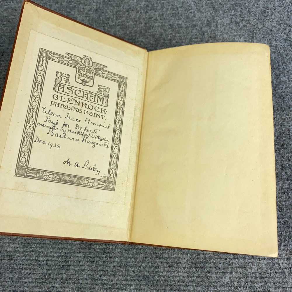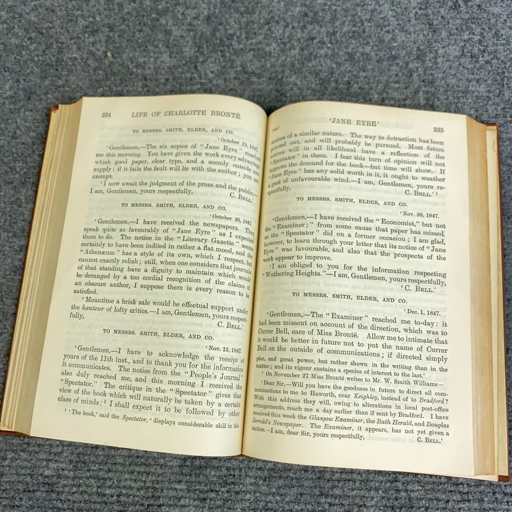 The Life of Charlotte Bronte 1934 RARE Leather Bound Haworth Pocket Edition Book The Life of Charlotte Brontë is a posthumous biography of the renowned English author Charlotte Brontë , penned by fellow writer Elizabeth Gaskell . This significant work was first published in 1857 by Smith, Elder & Co. Gaskell drew extensively from the hundreds of parcels exchanged between Brontë and her lifelong friend, Ellen Nussey. These parcels provided valuable insights into Charlotte’s life and experiences. This biography chronicles Charlotte Brontë’s life—from her solitary childhood to her prolific writing career, her marriage at the age of thirty-eight, and her untimely demise less than a year later. Gaskell’s portrayal remains a lasting tribute to the enigmatic author who bestowed upon us the timeless classic, Jane Eyre, subtitled “An Autobiography". This Haworth Pocket Edition is in leather with thin pages and bears the insignia of the prestigious Darling Point Ascham School. Good to very good condition with wear & discolouration as shown. Beautiful gilt blocked leather bindings are intact & tight with bright & clear lettering. No Dust Jacket. Award plate dated 1938. Shelf wear to the corners and edges. Photographs are of the actual book you will receive. **I'm always happy to send more detailed photos and/or information - you just need to ask. Standard international shipping rates apply. Combined shipping is available. If you have any questions, would like more photos and/or measurements, please send me a message.