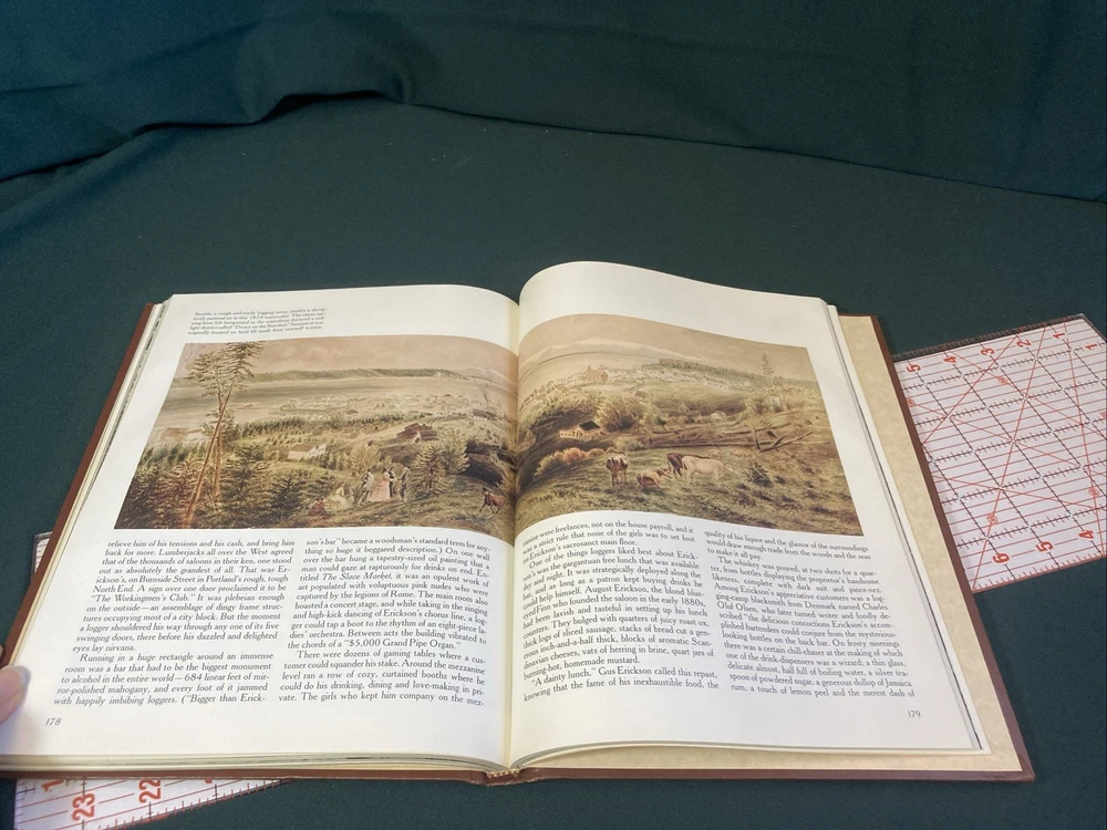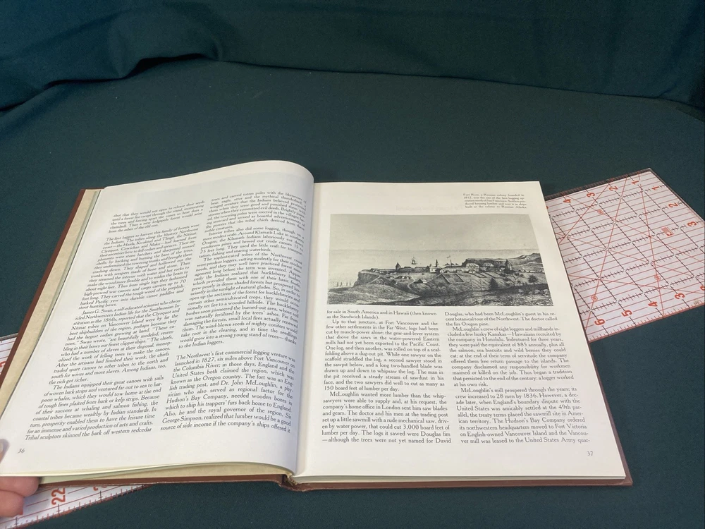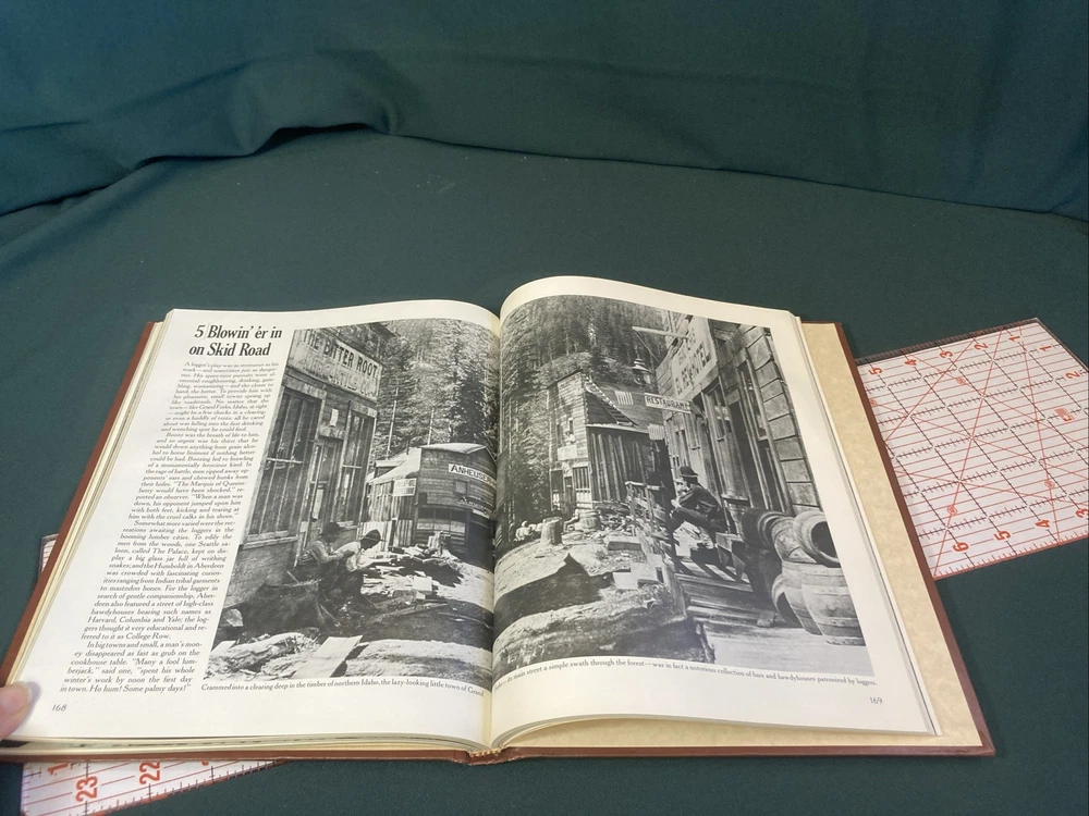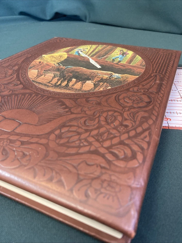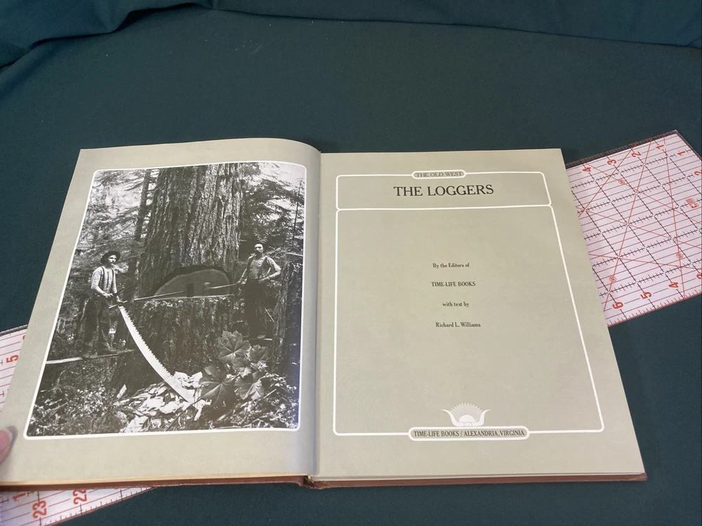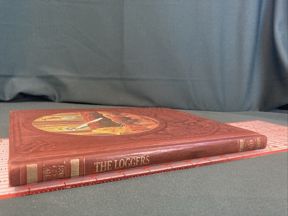 The Old West : The Loggers by Time-Life Books. 4th printing 1981. This Book features a padded leather like cover that has some minor cosmetic shelf wear and two noticeable cup ring dents in the padding of the back cover. No other damage noted anywhere in the book. Ships via USPS Media Mail.
