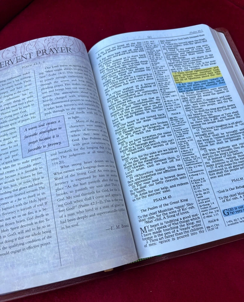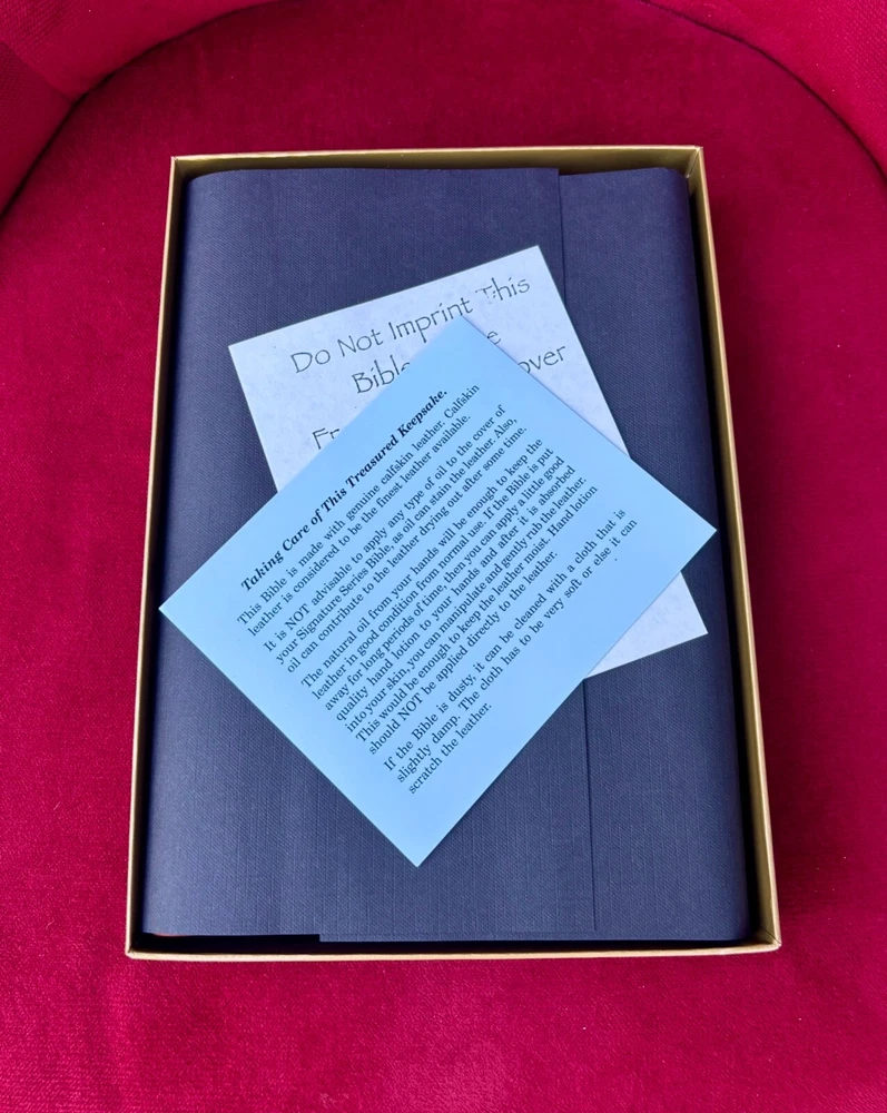 Beautiful Bible in perfect condition. Great seller. USPS was slow to deliver, but that was not the fault of the seller as it was shipped promptly. Very pleased with my purchase and I highly recommend!