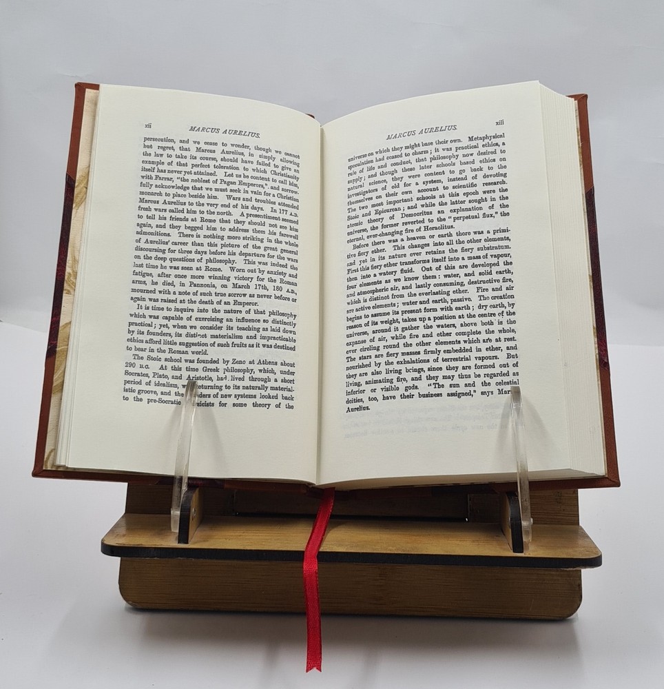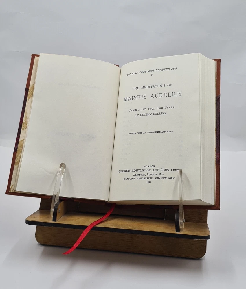 About the Book: Complete Title: The Meditations of Marcus Aurelius 1892 [Leather Bound] Author: Marcus Aurelius, Jeremy Collier(Tr), Alice Zimmern Edition: Reprinted by Gyan Books in 2020 with the help of original edition published long back [1892] . Language: English No. Of Pages: 240 Binding: HALF LEATHER binding features a leather spine and corners with the remaining cover in Raxine or Marble Paper. CHOOSE ANY LEATHER COLOR OF YOUR CHOICE WITHOUT ANY EXTRA CHARGES JUST CLICK ON IMAGES FOR OPTIONAL COLORS AND INFORM US YOUR CHOICE THROUGH MAIL WITH COLOR CODE. Customization Options Available Upon Request We provide 'Extra customization*' on request with additional charges. Please note that customization charges are applied in addition to the listed item (Book) price. Customization Extra Charges Sample Image FULL LEATHER BOUND WITH GILDED EDGES (ANY COLOR) USD 35 MULTI-COLOR LABELS (Spine) USD 12 PERSONALIZED IMAGE EMBOSSING ON THE FRONT COVER USD 40 FOLIO EDITION (12x18.5 inches) BIGGER SIZE Six times of the given price Points to note before booking order: SPECIAL DISCOUNT FOR BULK ORDERS PLEASE CONTACT US. UNIQUE LEATHER-BOUND Edition on Spine and Corners along with Golden Leaf Printing on Round Spine. This book is: Printed in Black & White (If a color edition is available you may request it by mail for a nominal charge.) Sewed binding for longer life Printed on high quality Natural Shade Acid Free Paper Professionally processed without changing its content Genuine Leather is being used for Binding Handcrafted Golden Leaf Printing. Round Spine Handmade Marble paper use for end paper Raise bands Bookmark Ribbon As these are old books each page is processed manually to make them readable. But in case some pages are blur or missing or have black spots the same are re-printed as it is to keep the authenticity of the book. In case of multi volume sets please note that the above listing is for a single volume only. (To order multiple volumes please contact us separately). We request you to understand that these leather-bound books are work of art and hence require time to go through different process to be the masterpieces that they are. We usually take 20 business days as handling time to dispatch shipment. We consider special request for a special occasion. Craftsman based in India prepared this book and shipped from different stock locations around the Globe. PRODUCT DISCLAIMER: Please be aware that because leather is a natural material slight discoloration or change in texture may be visible. ABOUT US GYAN BOOKS INTRODUCING A REMARKABLE LEATHER-BOUND EDITION, METICULOUSLY CRAFTED BY THE ESTEEMED INSTITUTION: RARE BIBLIO A UNIQUE LEATHER-BOUND BOOK FOR ELITE READERS/COLLECTORS OF OLD RARE AND BESTSELLING BOOKS. An ORIGINAL LEATHER is being used for Binding this Book on SPINE AND CORNERS along with GOLDEN LEAF PRINTING {Half Leather}. We deal into reprinting of the masterpieces crafted by authors around the world. We are proud to say that we have a collection of over 25 million books and our collection includes books that are as old as 200 years and hence are considered as RARE BOOKS. We are pioneer in this field having experience of 40 years. We also undertake printing and Leather Binding jobs of other books. Thesis printing and Leather Binding is one of our important services. Many publishers and authors approach us for their books to bind in our unique leather binding format for their special customers. Our craftsmen are active in this job since generations. Restoration of old books is our expertise. We are known by our Customization options. We have many leather color options in our bucket. The whole process is done manually so that it gives you the same feeling of old book.