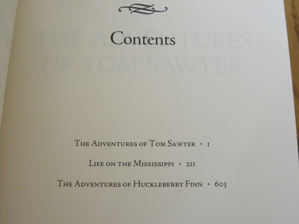The Mississippi Writings of Mark Twain - Leather Bound - Hardcover I am considering this new. I have had this for a few years but never used it for reading. Therefore it is MINT. 890 Pages. Books Include: 1. The Adventures Of Tom Sawyer 2. Life On The Mississippi 3. The Adventures of Huckleberry Finn