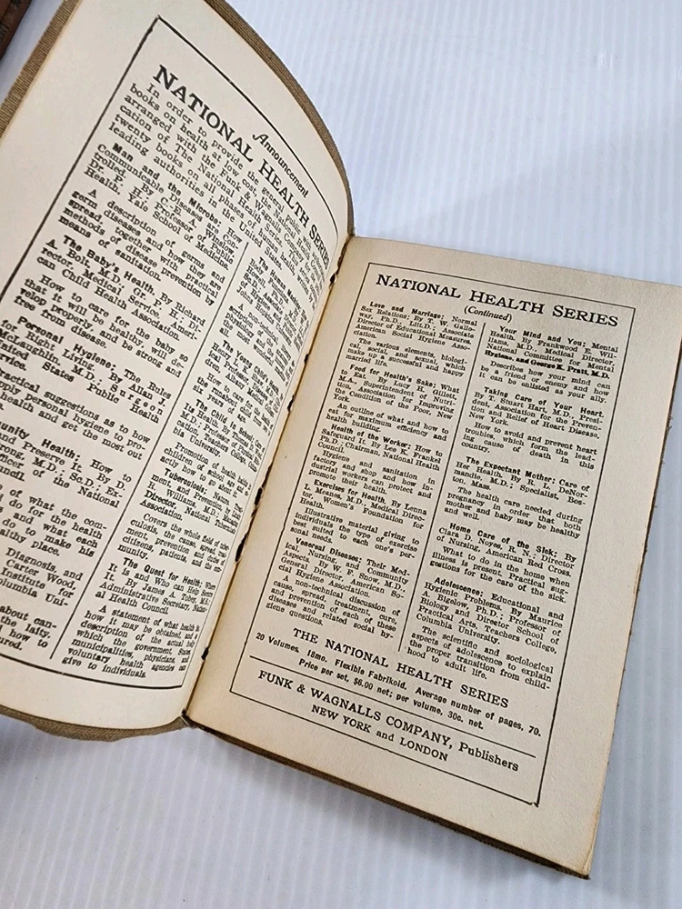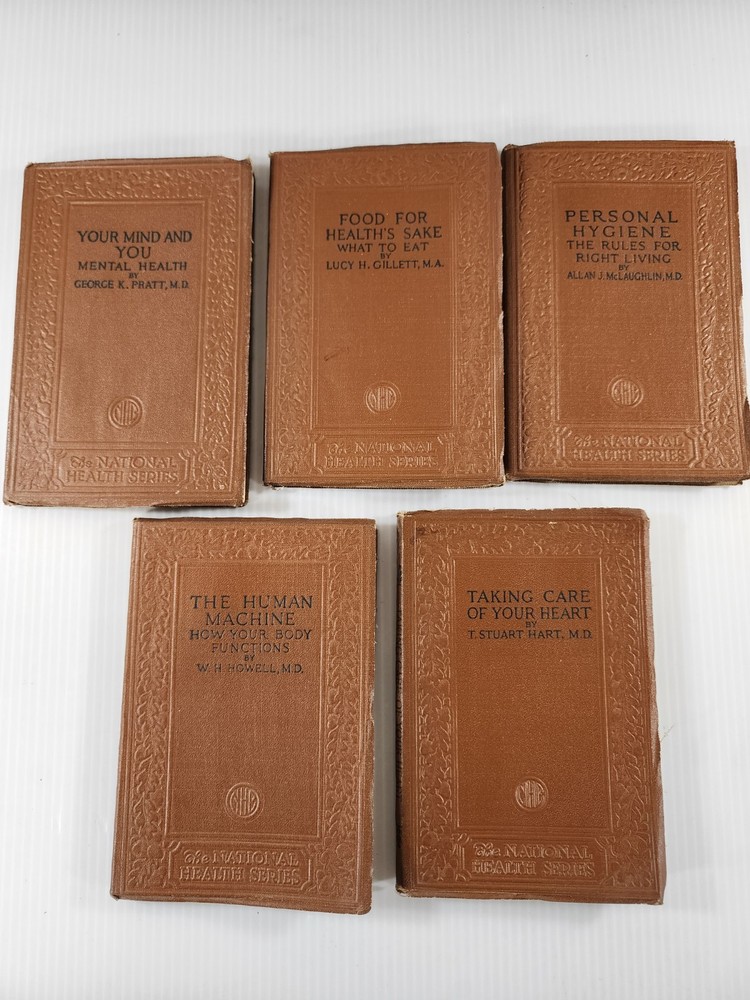 Delve into the past with this exquisite lot of 5 vintage books from 1924, collectively known as The National Health Series. These antique leather-bound books offer a unique glimpse into the medical and health-conscious mindset of the early 20th century, providing an insightful read for collectors and history enthusiasts alike. Each book in this set is a testament to the era's craftsmanship, with the leather binding preserving the originality and authenticity of the texts. These volumes do not only hold historical value but also serve as elegant decorative pieces, perfect for display or as a thoughtful gift for the bibliophile who appreciates the convergence of medicine and literature.