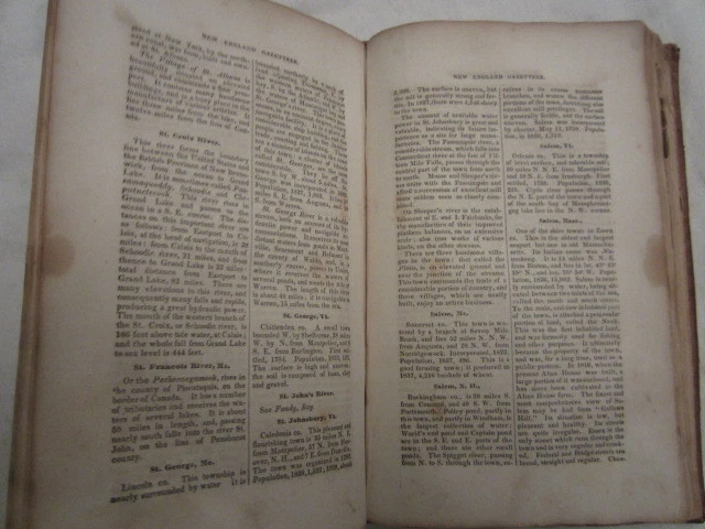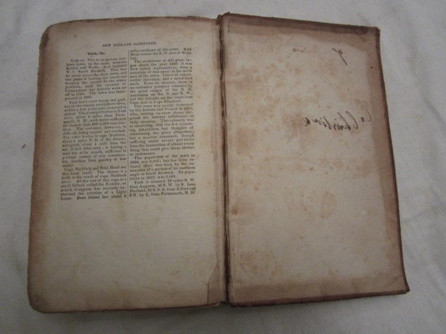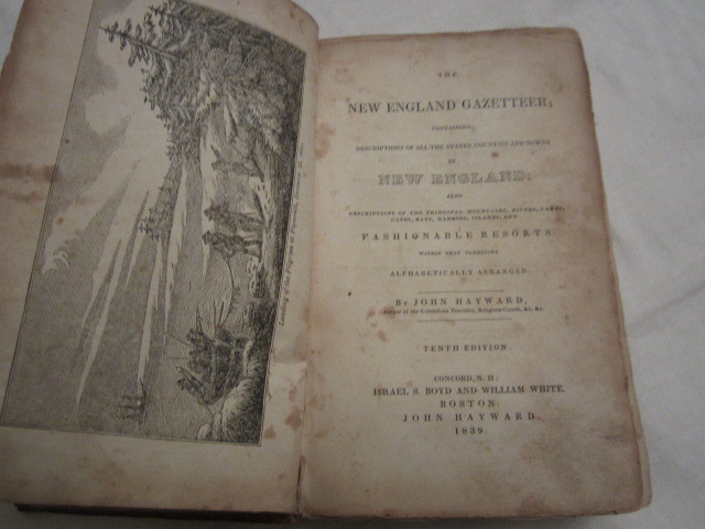 ANTIQUE LEATHER BOND BOOK - The New England Gazetteer Containing Descriptions of all the states, counties and towns in New England also Descriptions of the Principal Mountains, Rivers, Lakes, Capes, Bays, Harbors, Islands and Fashionable Resorts within that Territory by John Hayward 10th Edition 1839 Concord, NH. Antique Leather Bound Book in O.K./Good condition. Book is clean but has a slight attic odor. Book has a few antique markings. There is wear from everyday handling. The last page in the book (probably blank) has been torn away. There is some damage to the binding. I make every attempt to describe items in detail and attempt to describe both their positive and negative qualities. All items are returnable for a refund should an item not meet the buyer's expectation. I accept payment through paypal.com only. I ask that all purchases be paid for soon after purchase. I welcome questions about items that I have for sale and I will attempt to answer all questions as soon as possible. I ship paper items and books via Media Mail (3 to 14 days delivery time). The shipping and handling costs, within the United States, are $6.00 for this item. I will ship items outside the U.S. but shipping costs may be considerably higher. Please email me concerning foreign shipping before bidding. Thank you!