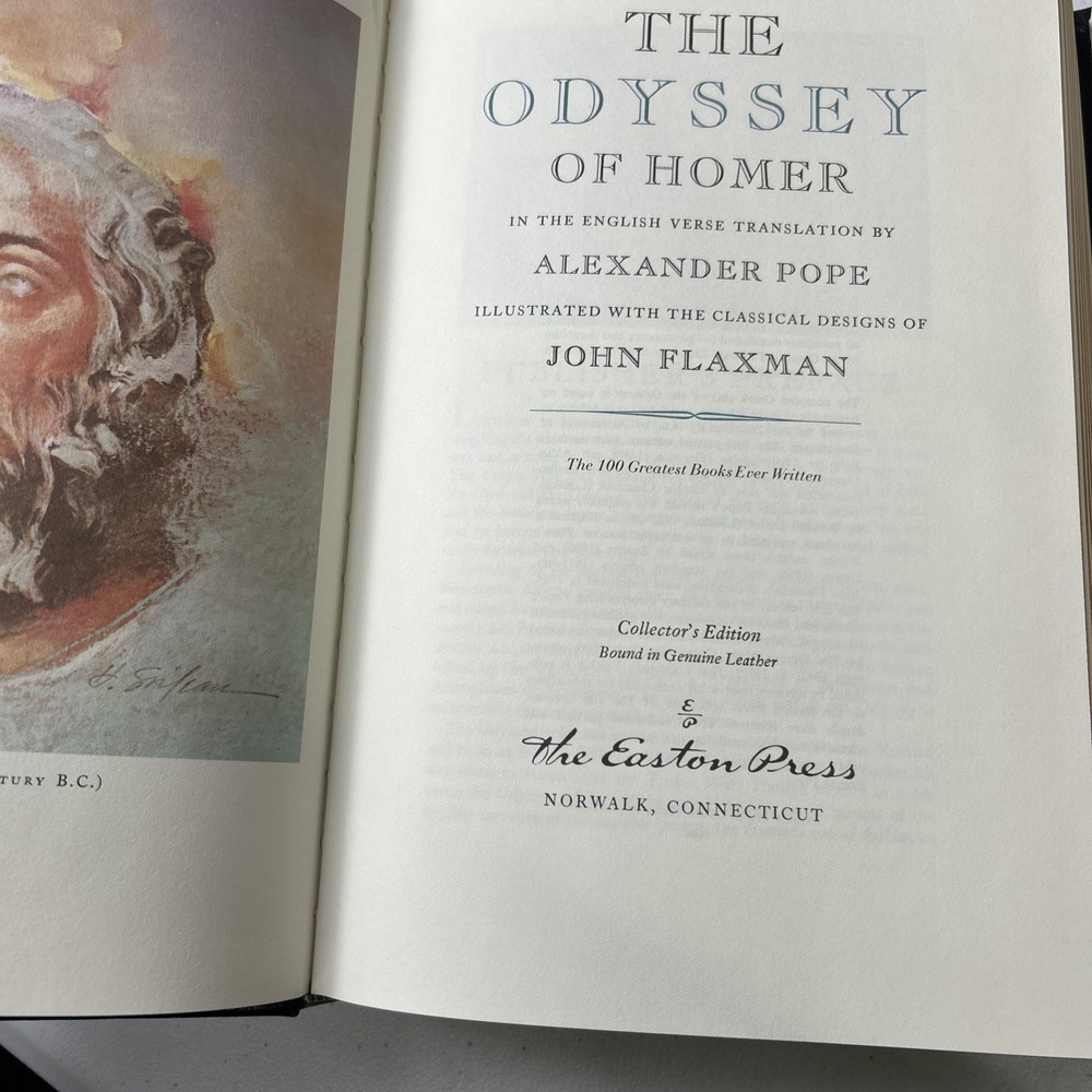 The Odyssey of Homer by Easton Press is a beautifully crafted leather-bound collector's edition book. This classic piece of literature, written by the renowned author Homer, is in English language and is a valuable addition to any book collection. Published in the United States, this original edition features elegant gold accents and is a perfect choice for literature and fiction enthusiasts.