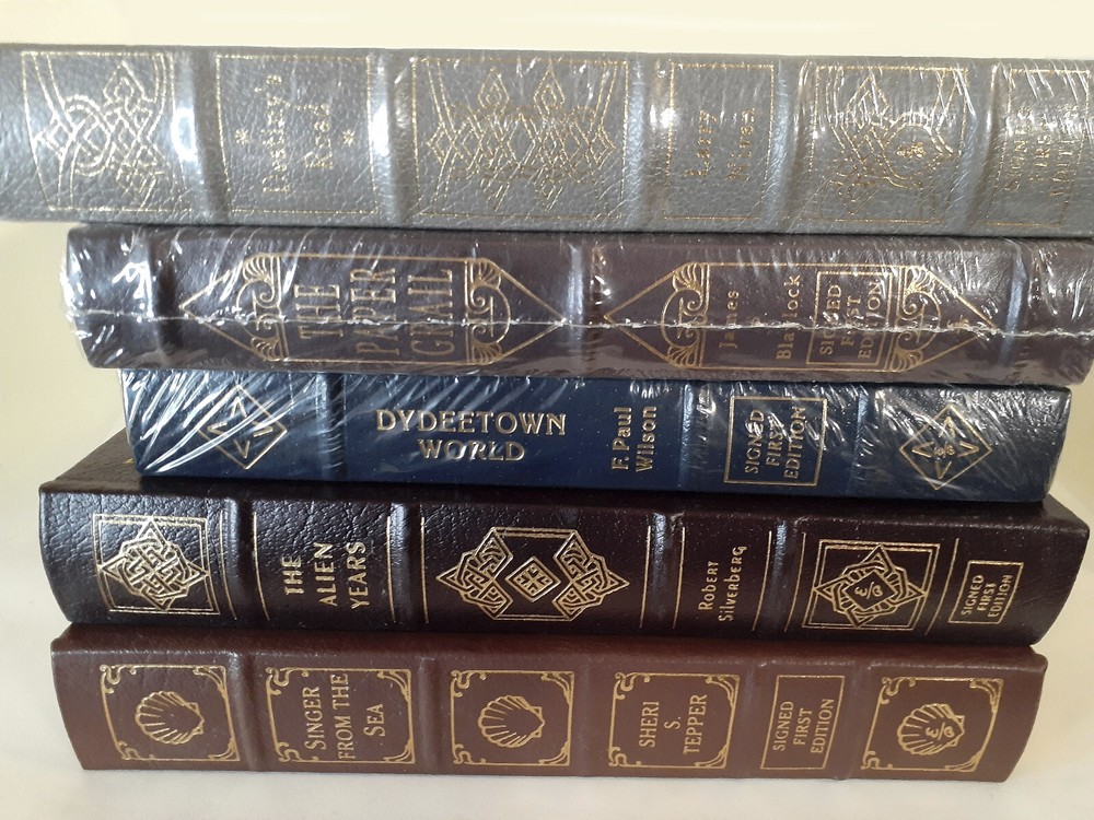The Paper Grail | James P. Blaylock ; Easton Press Science Fiction 1st Edition SIGNED FACTORY SEALED Condition & Returns Original Factory Sealed in New Condition. Stored in a temp controlled environment for past 30 years. May be the only one left in this condition. Returns available, but must be in same original condition. Synopsis A California museum curator goes to Mendocino to pick up a nineteenth-century woodcut sketch for his collection and runs into strange characters who seem to think the folded scrap of paper holds magnificent powers.