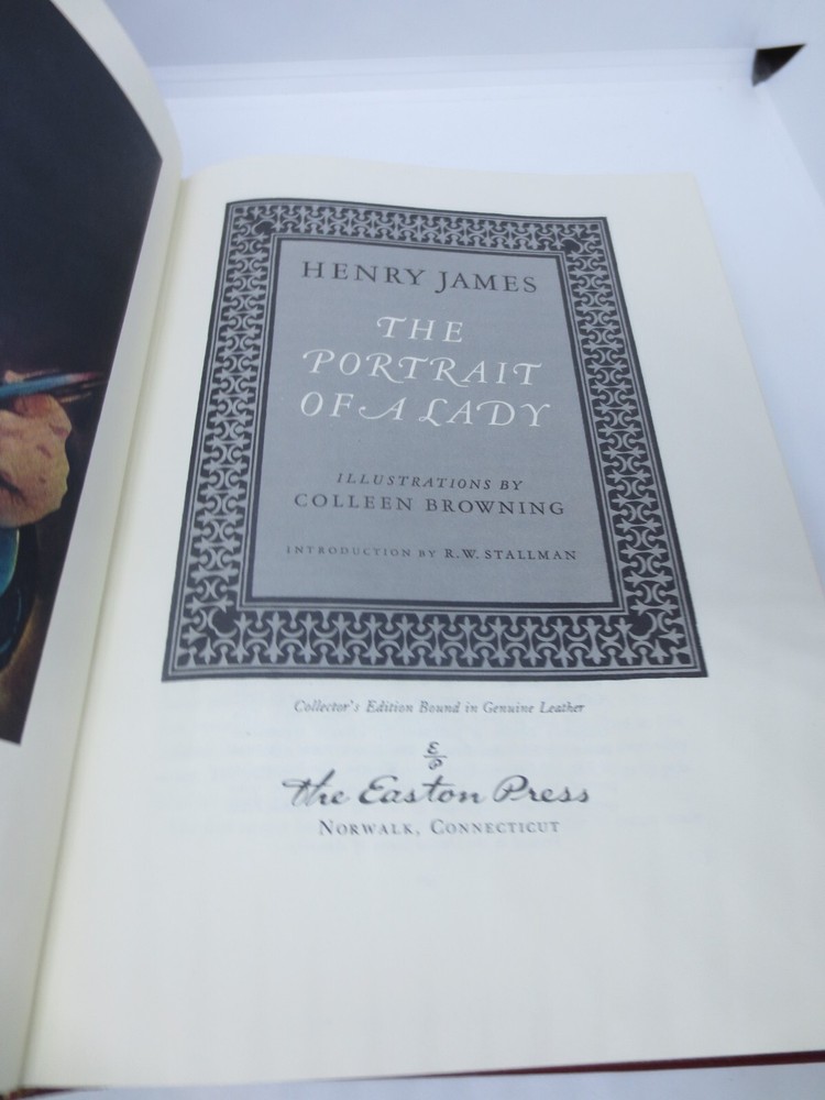 This collector's edition of The Portrait of a Lady by Henry James is a true gem for any book enthusiast. The intricately bound leather cover and the beautiful illustrations by Colleen Browning are just a few of the special attributes of this edition. Originally printed in 1978 by Easton Press in the United States, this book is a sought-after classic in the literature and fiction category. The English language and the subject of the book make it a great addition to any collection of classics. Don't miss out on this opportunity to own a piece of history. Please look at pictures to see the actual item that you will be receiving so there are no surprises. Smoke free home. Email me with any questions. Thanks.