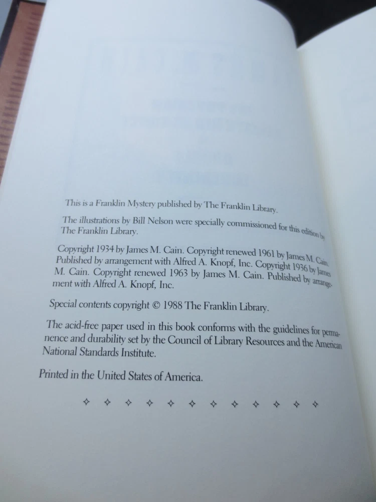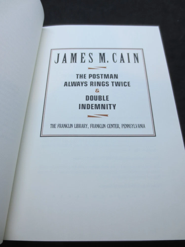 The Postman Always Rings Twice & Double Indemnity by James M. Cain - Franklin Mystery. Vintage 1988. Excellent Condition. Please look at pictures to see the actual item that you will be receiving so there are no surprises. Smoke free home. Email me with any questions. Thanks.