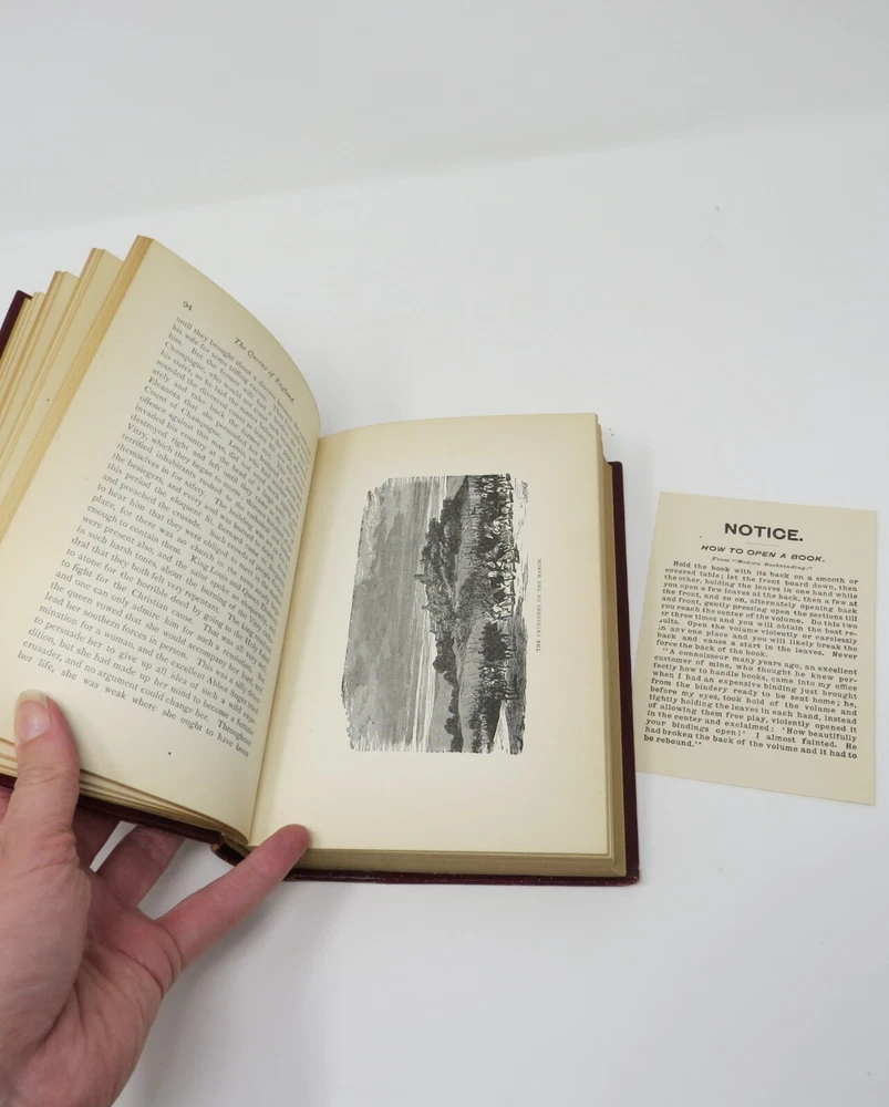 Chicago: The Werner Co., 1895. Vol. 1 of 3 books in the Young Folks’ History series. Burgundy leather over burgundy cloth, with gilt lettering to spine. Illustrated with B&W drawings throughout. Clean, tight volume with just very minor wear to covers. Even includes, still laid in, a note from the publisher: “How to Open a Book.”